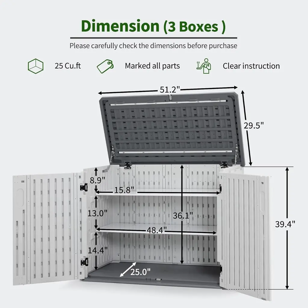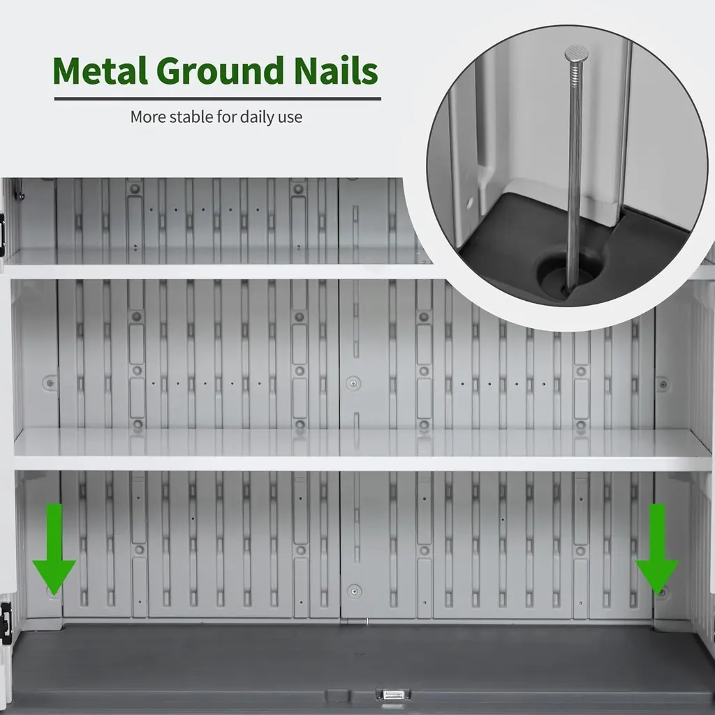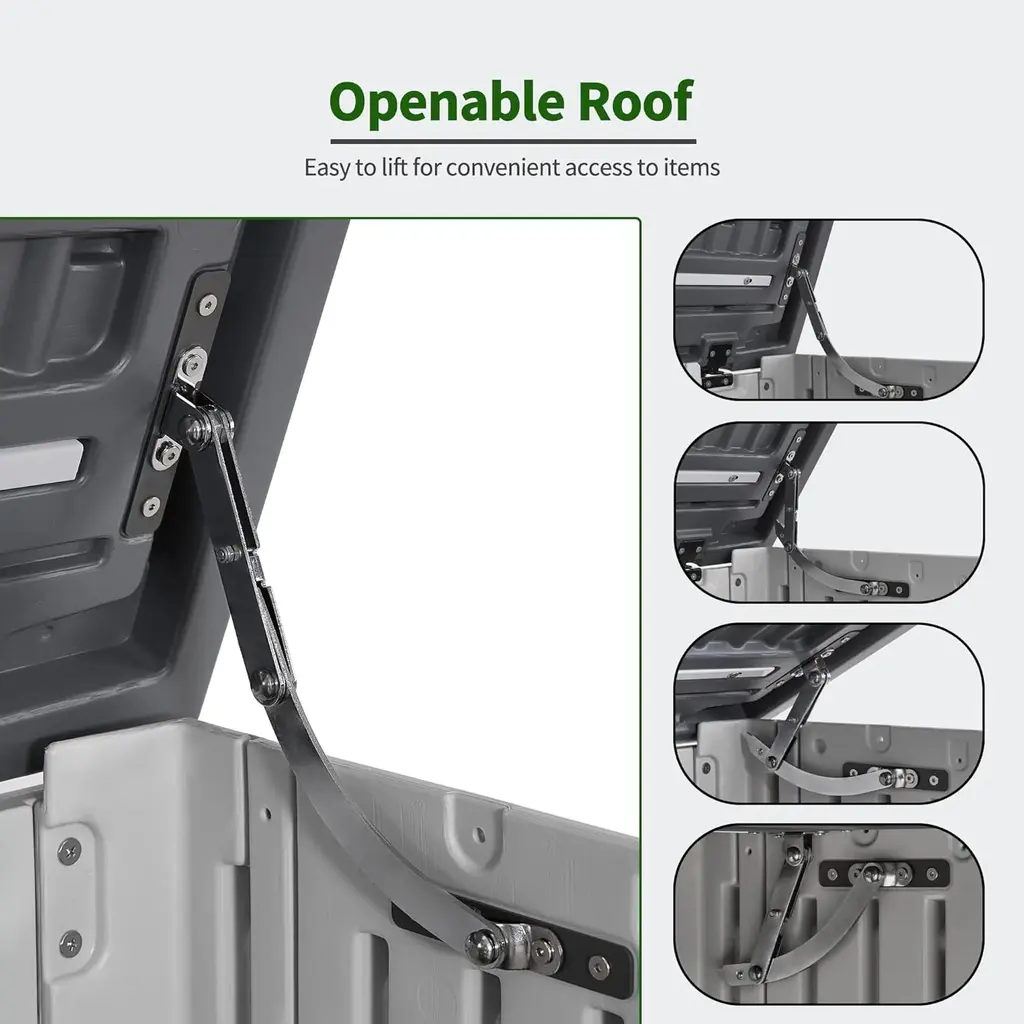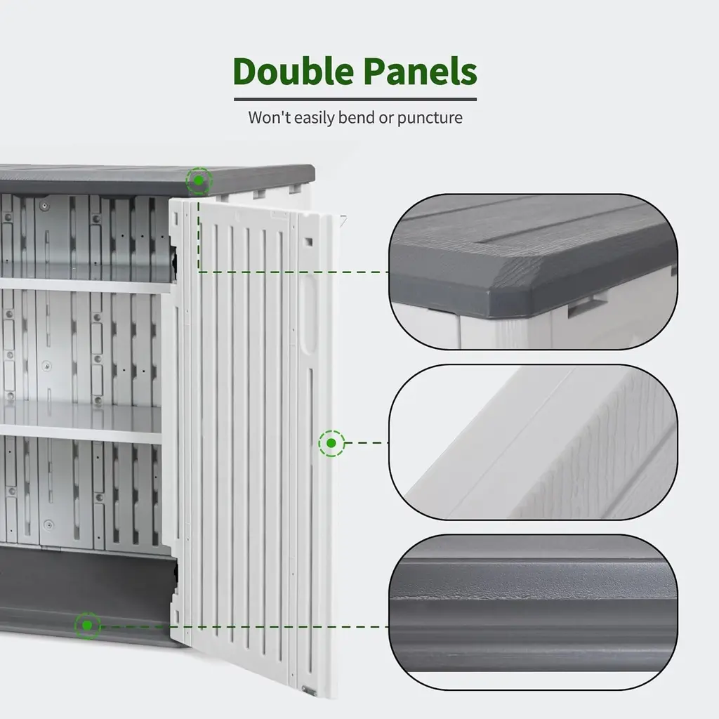 FeaturesProduct Description The plastic storage shed offers a secure and versatile outdoor storage solution, for organizing garden tools, lawn equipment, and other outdoor items. This shed is constructed with a waterproof structure, providing waterproof protection from rain. The double-panel side walls and textured surface add extra strength and visual appeal. Own this outside plastic shed, and enjoy a relaxing outdoor life! Buyer Reading Item Specifications Warranty How to solve any issue of the product? Please feel free to contact us, we will reply to you within 24 hours. Our customer support doesn't end with your purchase!