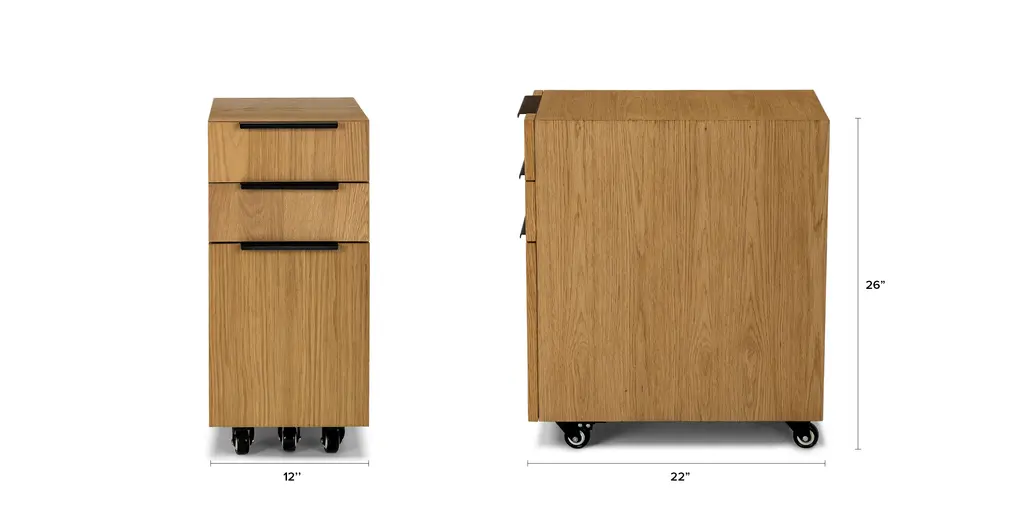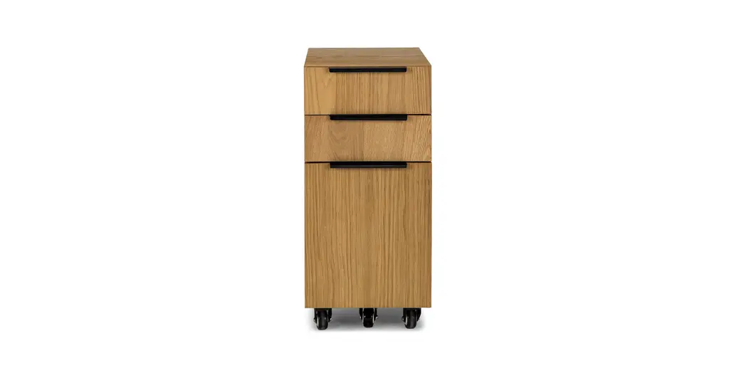 Filed under gorgeous. With soft-close upper drawers and locking wheels for easy access, this filing cabinet is the perfect place to store everything from files to love notes. Ready for your 9 to 5 grind, the Madera has a vertical file drawer and slim profile that allows for more leg room. When your documents really start to pile up, pair the Madera with another unit for even more storage.