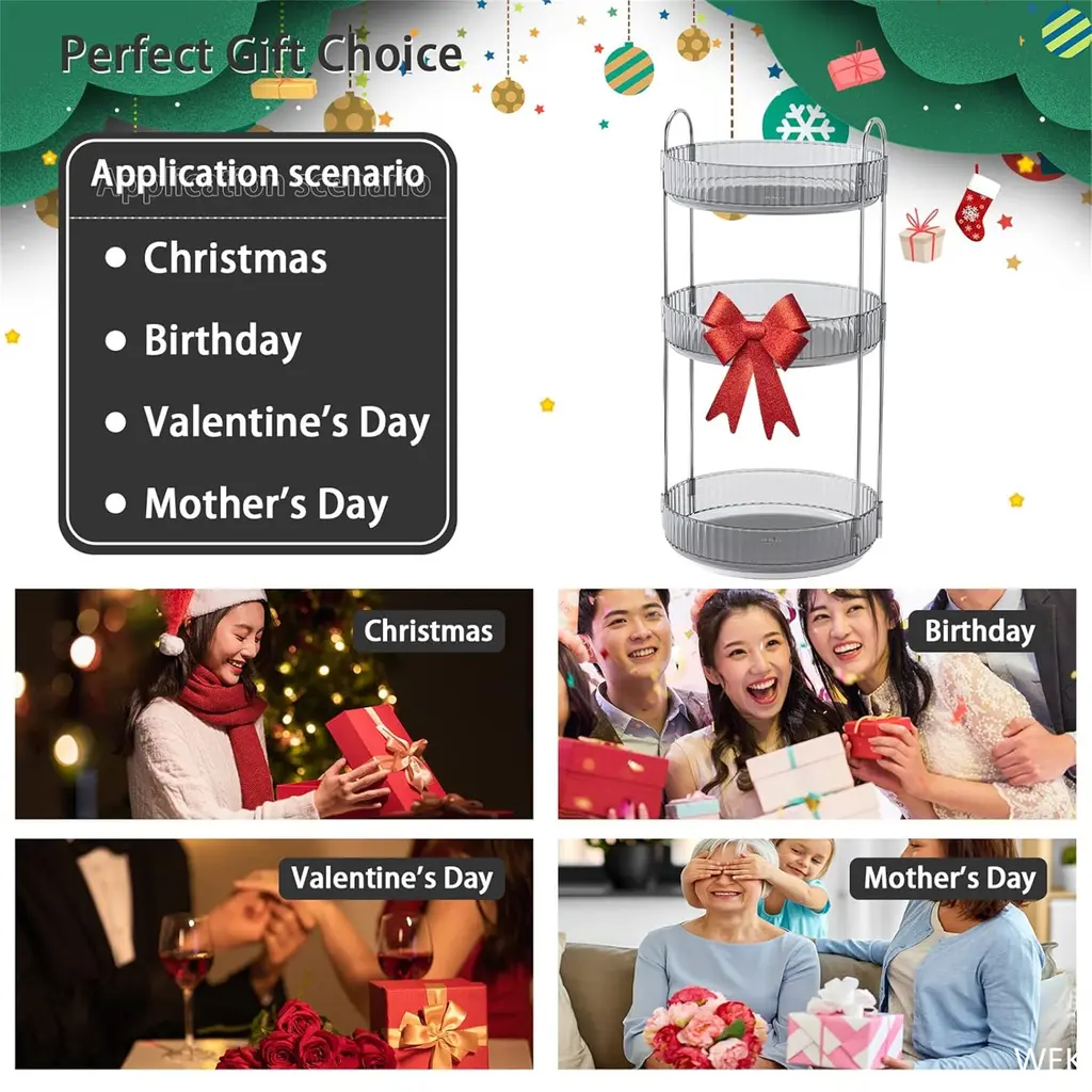 Design 360 rotation: 360-degree easy rotation can bring you a more convenient experience, the rotating base is smooth, and the edge of the tray is high enough to prevent the cosmetics from falling when rotating the cosmetics, suitable for all your cosmetics3-layer large capacity: This makeup storage box can be placed according to your own preferences, and can be used to store perfume, nail polish, lipstick, foundation blush, eye shadow, base makeup, makeup powder and nail tools, as well as toiletries such as facial cleanser, kitchen supplies such as spice racks, which can meet your daily needs and save you 80% of spaceSturdy material: The shelves on both sides of the cosmetics display cabinet are gold steel, and the two trays are aurora gradient purple high-quality ABS. The combination of white and gold is beautiful and durable, and can withstand the trampling of adults (experimentally tested, please rest assured to use)Easy to assemble: The Lazy Susan storage box is very simple and convenient to assemble, and it can be assembled in less than 1 minute. You can also disassemble each part for cleaning.
