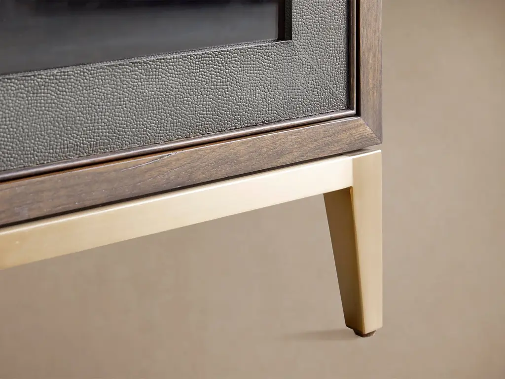 Featuring a sleek aesthetic, our Malone Collection is artisan-crafted from solid parawood or oak wood—depending on your preferred finish—and surfaced with walnut or elm wood veneers. Insets made from reconstituted leather embossed with a shagreen pattern are complemented by hand-applied finishes to give this collection a modern look with intriguing textural details. Elegant silhouettes and metallic accents will elevate your space to a new level of refinement.