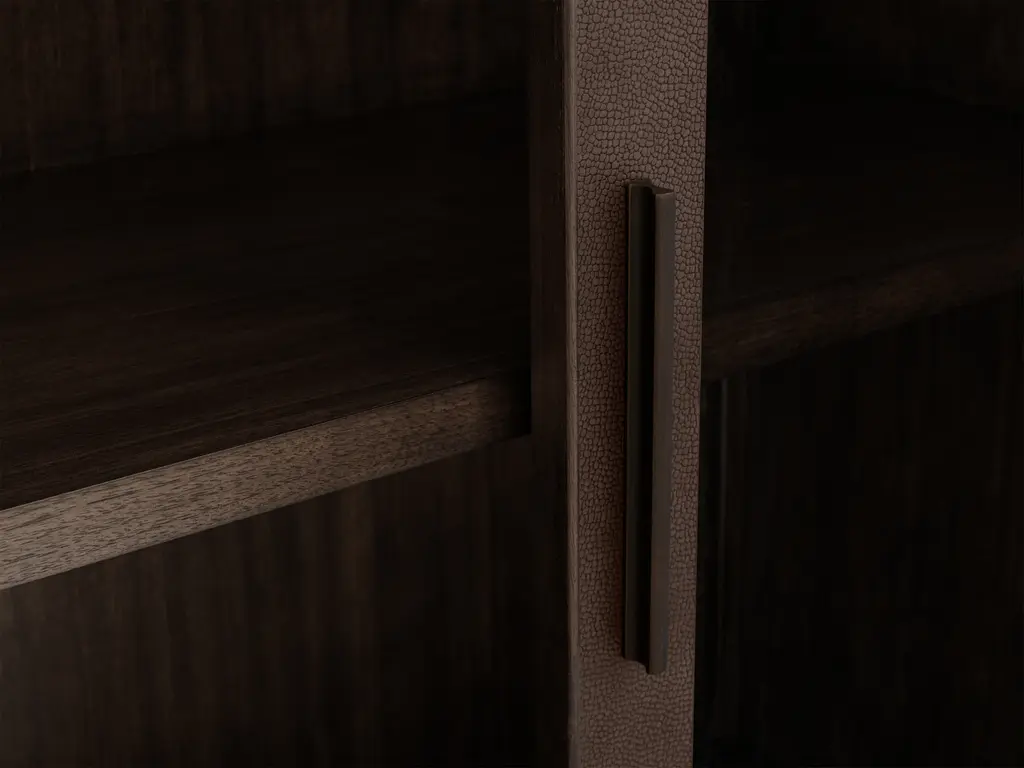 Featuring a sleek aesthetic, our Malone Collection is artisan-crafted from solid parawood or oak wood—depending on your preferred finish—and surfaced with walnut or elm wood veneers. Insets made from reconstituted leather embossed with a shagreen pattern are complemented by hand-applied finishes to give this collection a modern look with intriguing textural details. Elegant silhouettes and metallic accents will elevate your space to a new level of refinement.
