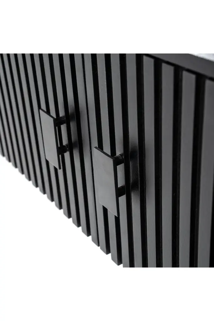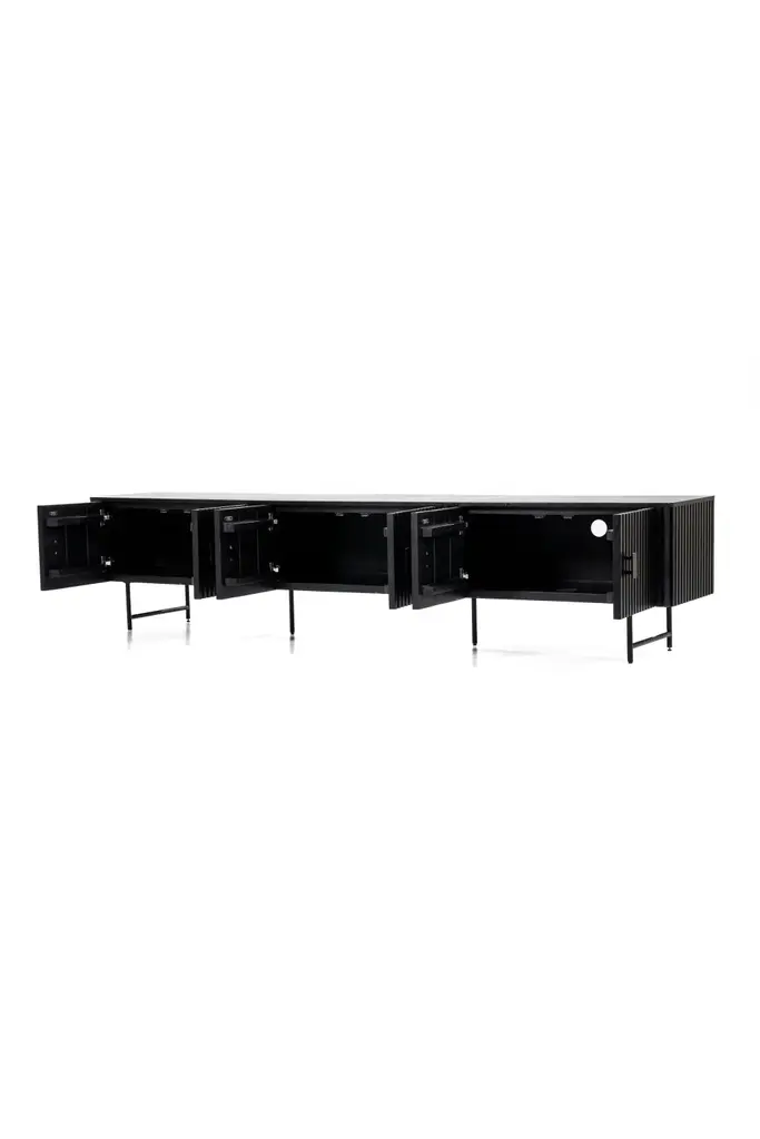 A modern minimalist TV cabinet that doesn't compromise on style. Remi by Eleonora features six doors enclosing shelved storage. Crafted from slatted mango wood, this dresser evokes clean aesthetics that easily make a fine feature in any room.