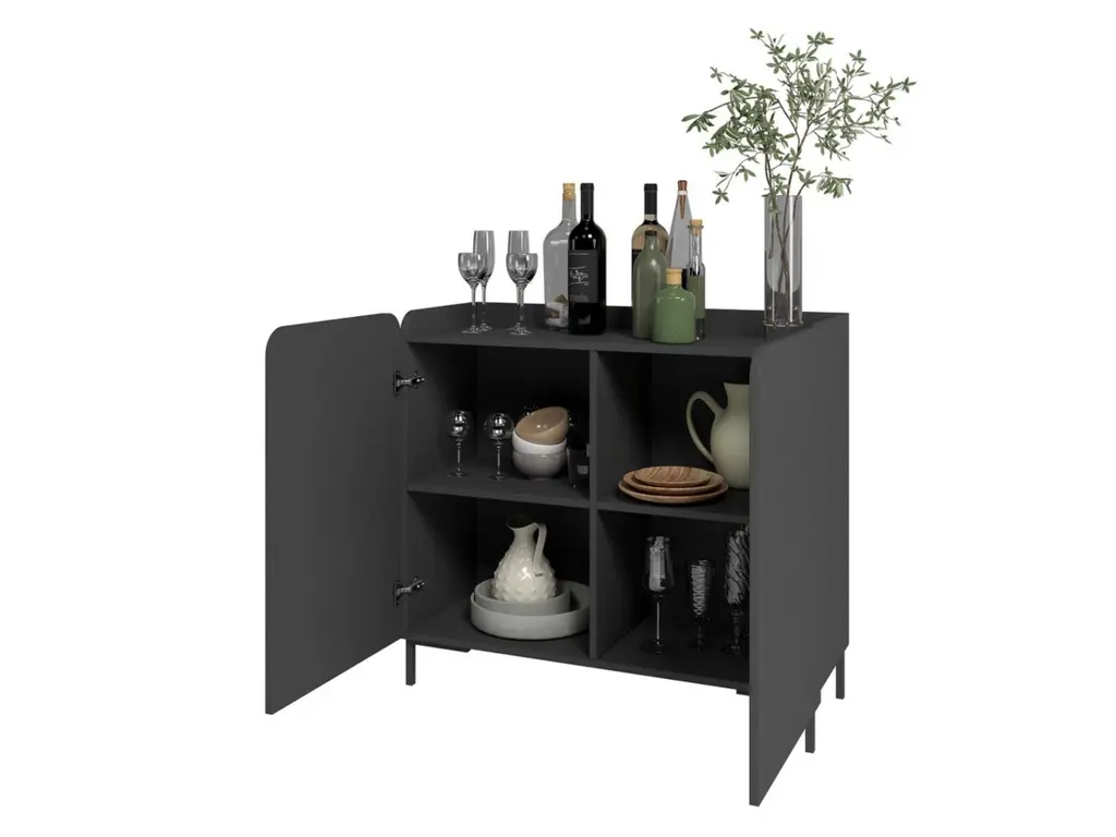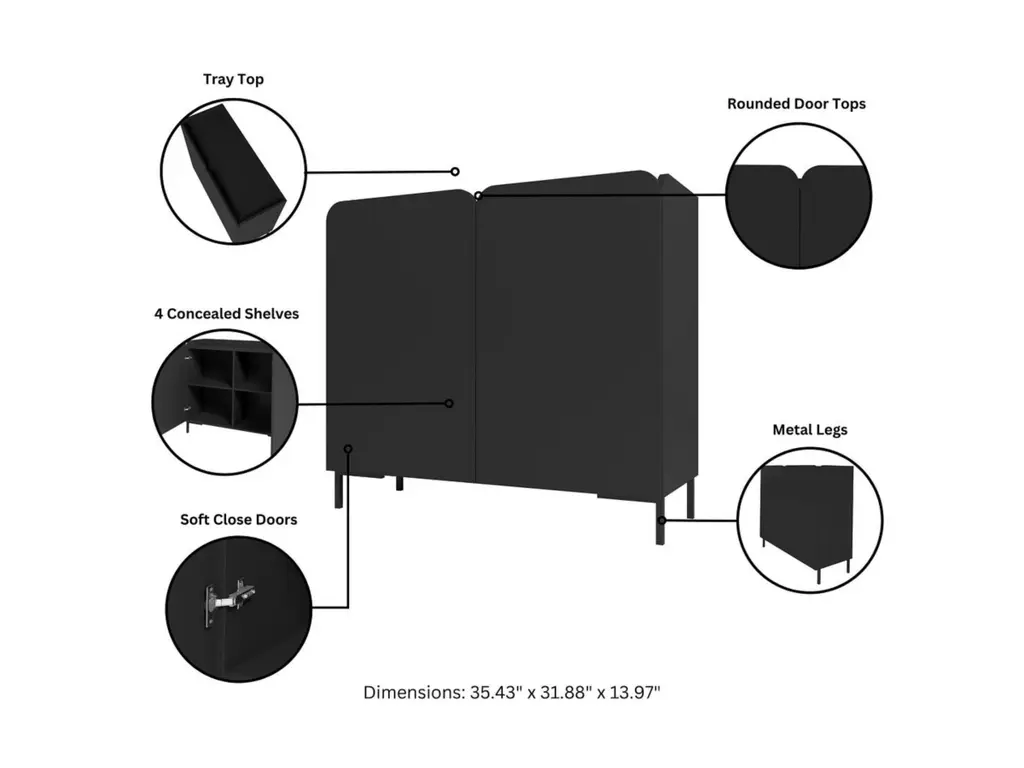 With its sleek, minimalist design, the Bogardus mid-century modern accent cabinet exudes an aura of contemporary sophistication. Crafted with clean lines and a monochromatic finish, it offers a timeless and understated elegance, making it an ideal choice for spaces that prioritize a refined, modern aesthetic. This cabinet features two soft close rounded doors with four fixed cubby shelves inside.