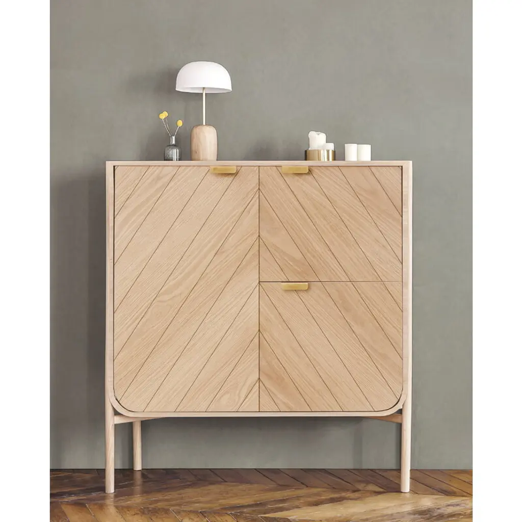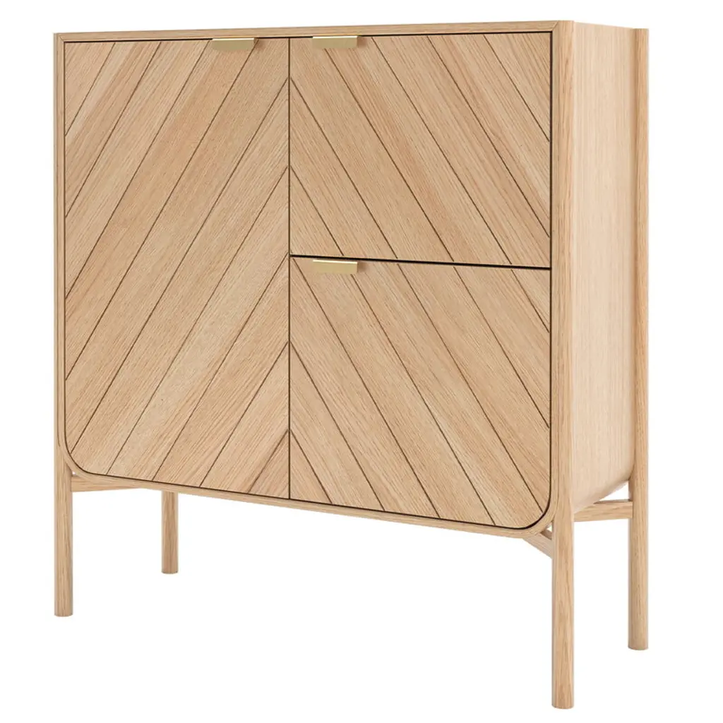 Hartô’s Marius cabinet, designed by Pierre-François Dubois, is a refined storage piece inspired by the graceful curves of sailing ship hulls. The oak-veneered surface highlights the cabinet’s sleek silhouette, while the subtly decorative doors evoke the shape of billowing sails. Brass handles and slender legs complete the elegant look. With its three doors, the Marius cabinet offers stylish storage for the hallway, living room or bedroom, and it can also serve as a practical cupboard in the kitchen.