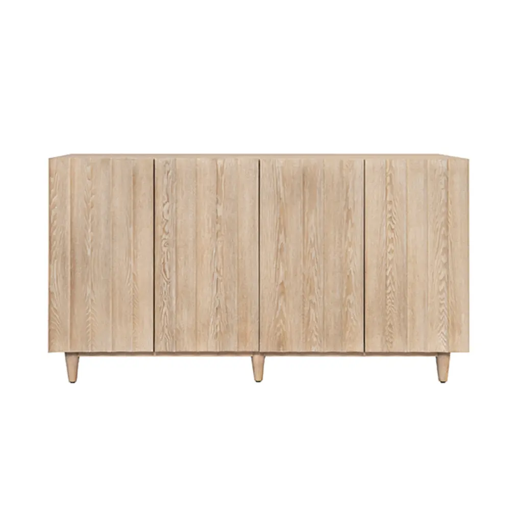 Matthew Izzo Home Odette Cerused Oak Four Door Scalloped Edge Buffet Cabinet