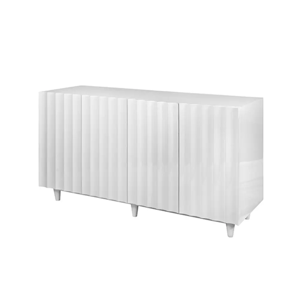 Matthew Izzo Home Odette Glossy White Lacquer Scallop Front Four Door Cabinet