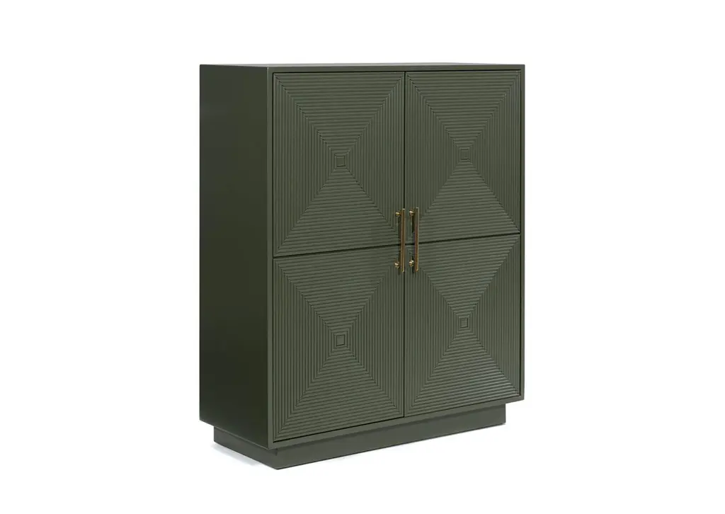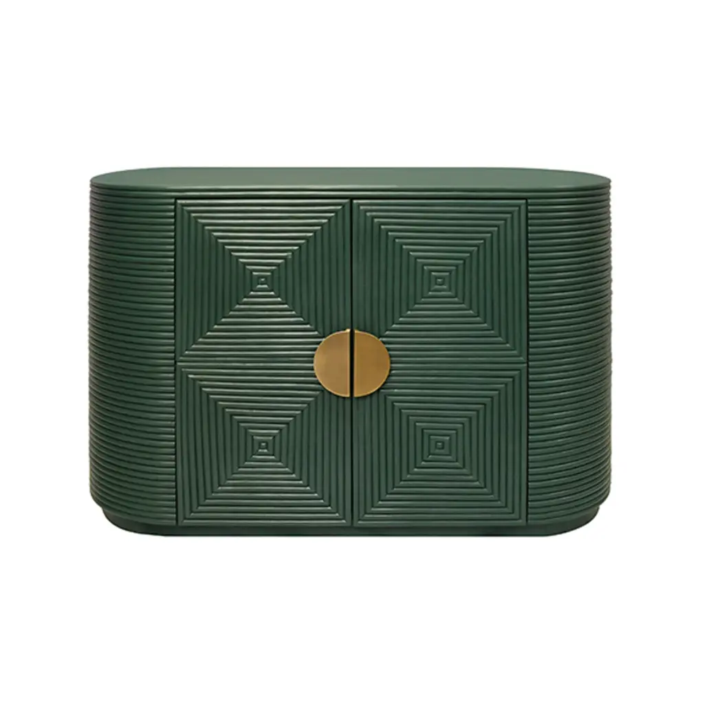 Matthew Izzo Home - Roger Hunter Green Rattan Two Door Cabinet With Curved Ends And Brass Hardware