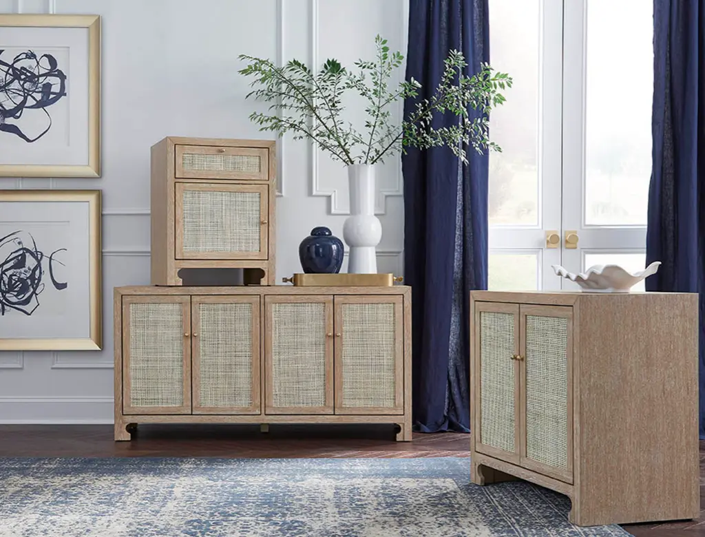 New Special Order Item. British West Indies style with a modern flair, this chic cabinet showcases natural, hand-woven caning on a stunning, natural cerused oak canvas. The result – a sublime composition that embodies casual elegance. Includes adjustable shelves in each cabinet. Whether placed in a coastal retreat or downtown loft, Sofia complements any design motif. 58" W X 30" H X 18" D *Cane has natural variations and may differ slightly between panels. Width:58.00" Height:30.00" Depth:18.00"