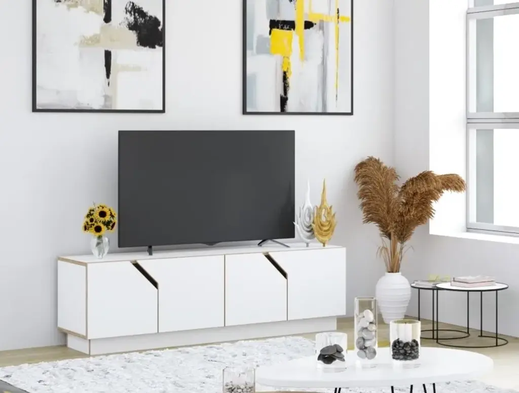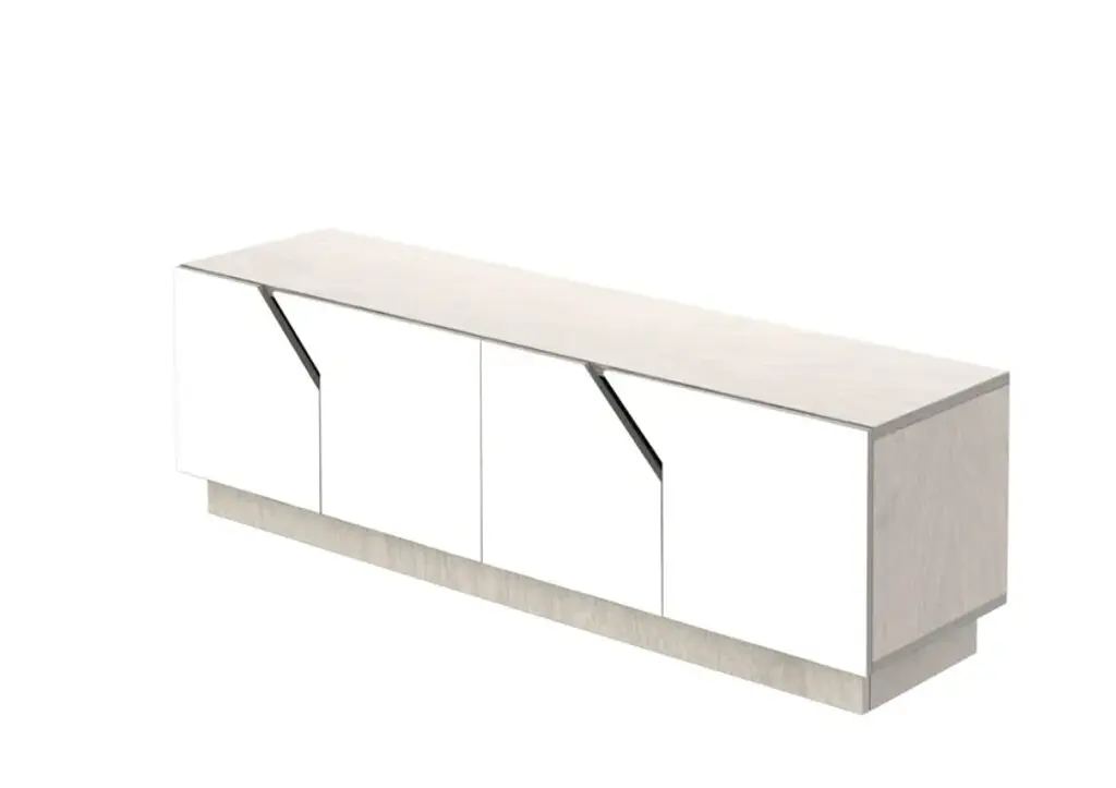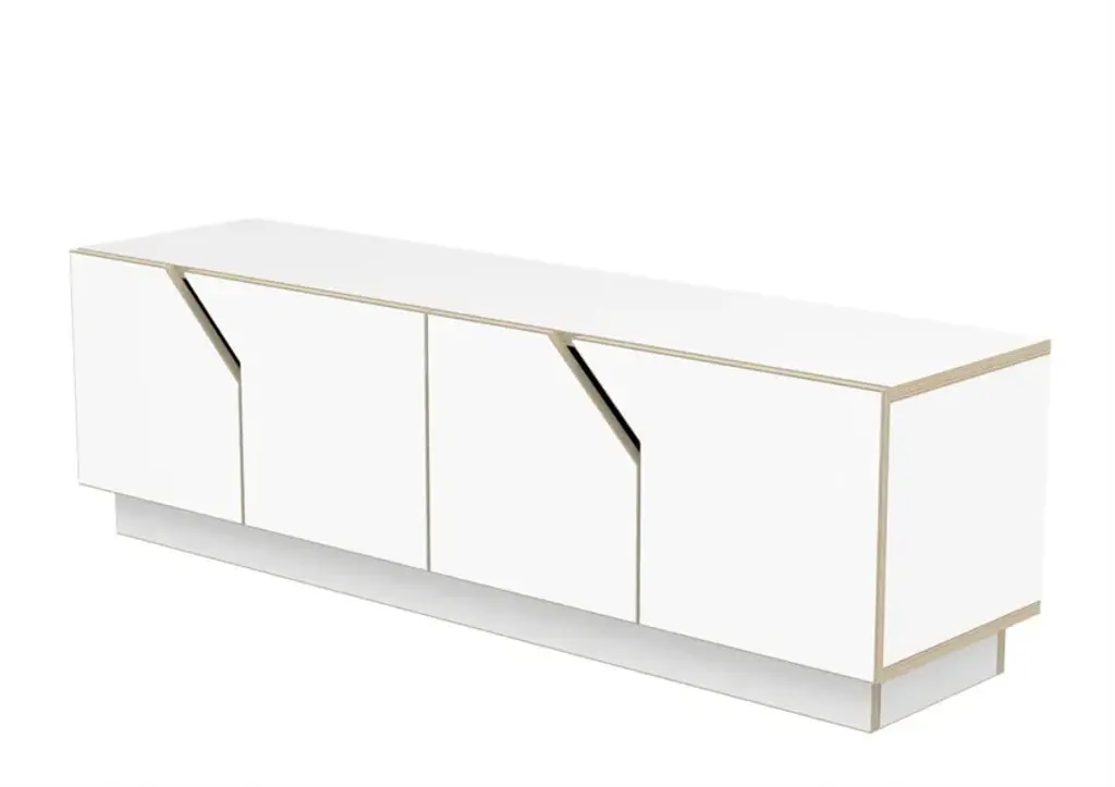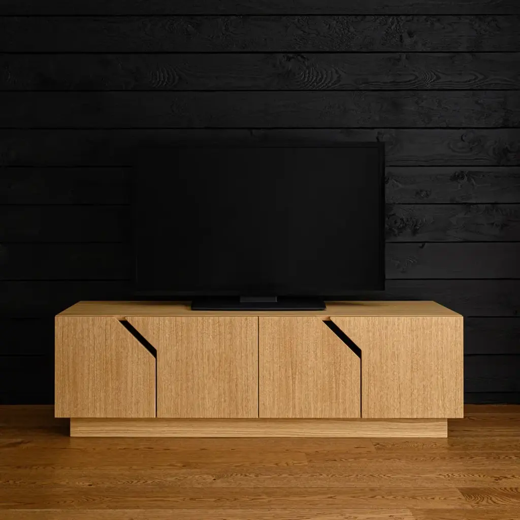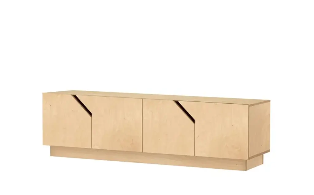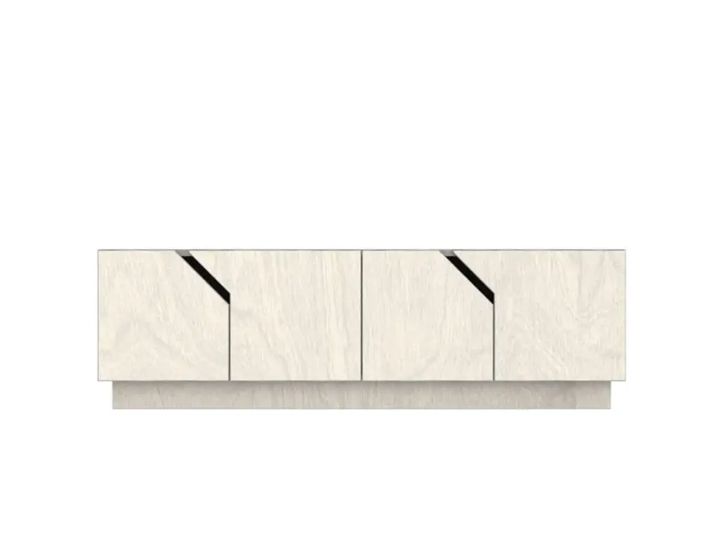 MAZE TV-stand is made of durable birch plywood. It has soft closure doors, so as not to disturb your quiet cozy evening at home. Interesting diagonal details give it enough character to stand out but the simple shape makes it suitable for many different interiors and styles.As with all RADIS TV-stands, the cupboards under them make it easy to keep your snacks, books, remote controls and other clutter away from sight to create a tidy overall impression. Comes in oak veneer or white shade.The 4-doors cabinet inner height is 33 cm with height adjustable dividing shelves.Made of birch plywood, oilwaxed. Soft close door hinges.