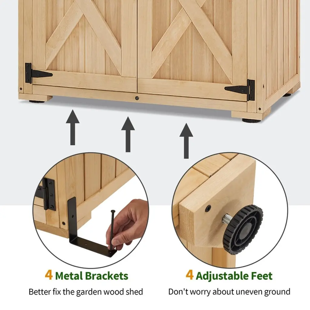 The wood outdoor storage cabinet shed can store most of your tools, such as watering can, water pipes, spades, pots, etc. Ending the messy garden life and tired back and forth. Own this MCombo outside wooden garden cabinet, enjoy a relaxing outdoor life!Key Features: Buyer ReadingItem Specifications How to solve any issue of the product?Please feel free to contact us, we will reply to you within 24 hours.Our customer support doesn't end with your purchase!