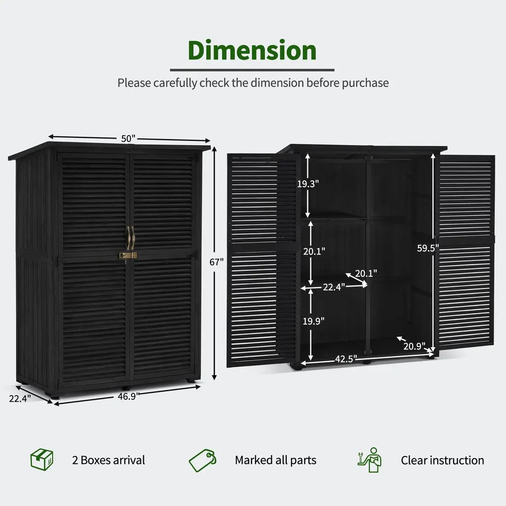 Mcombo Outdoor Storage Cabinet Shed, Shuttered Doors With Lock, Wooden 0709 / 0808 / 1900 - Large - Black