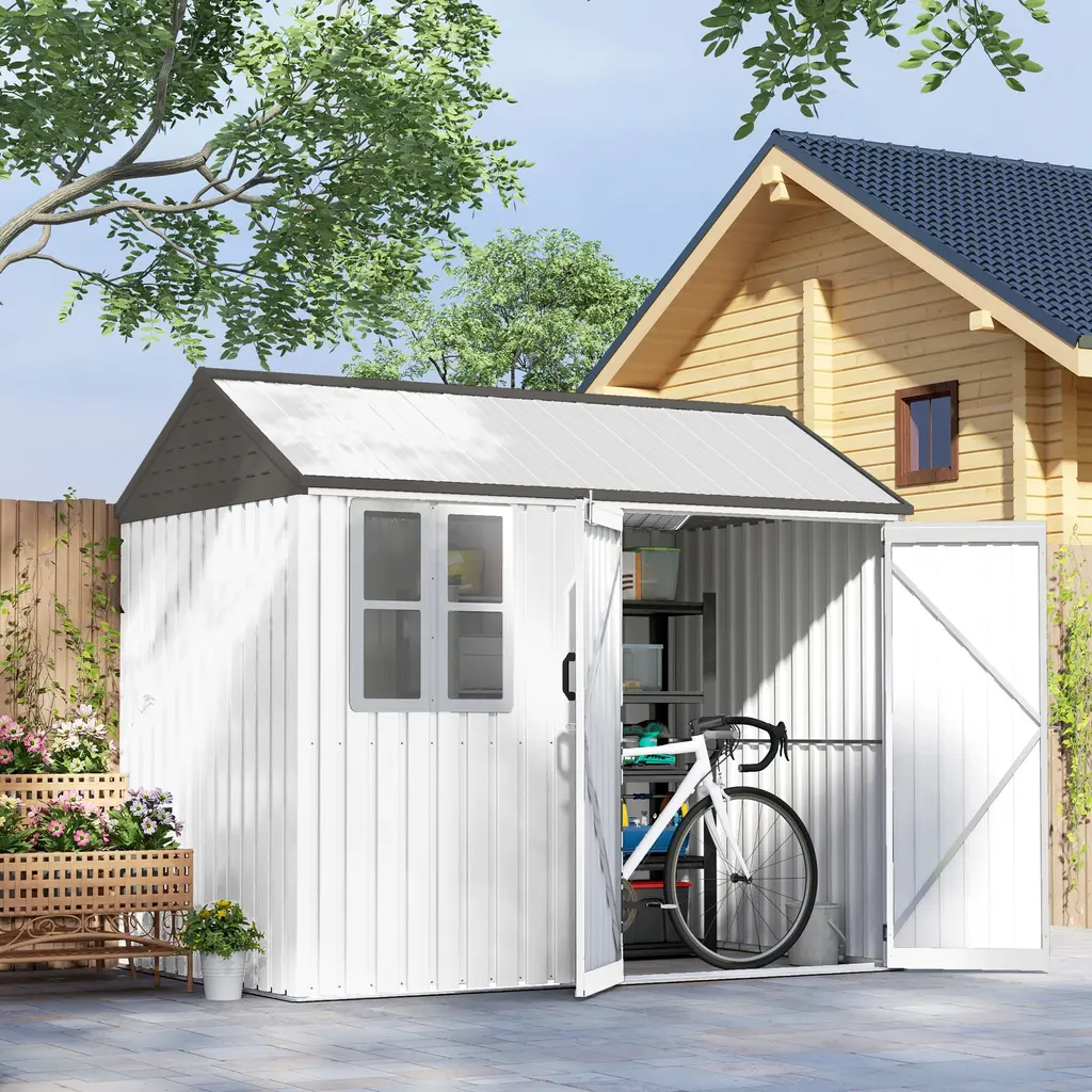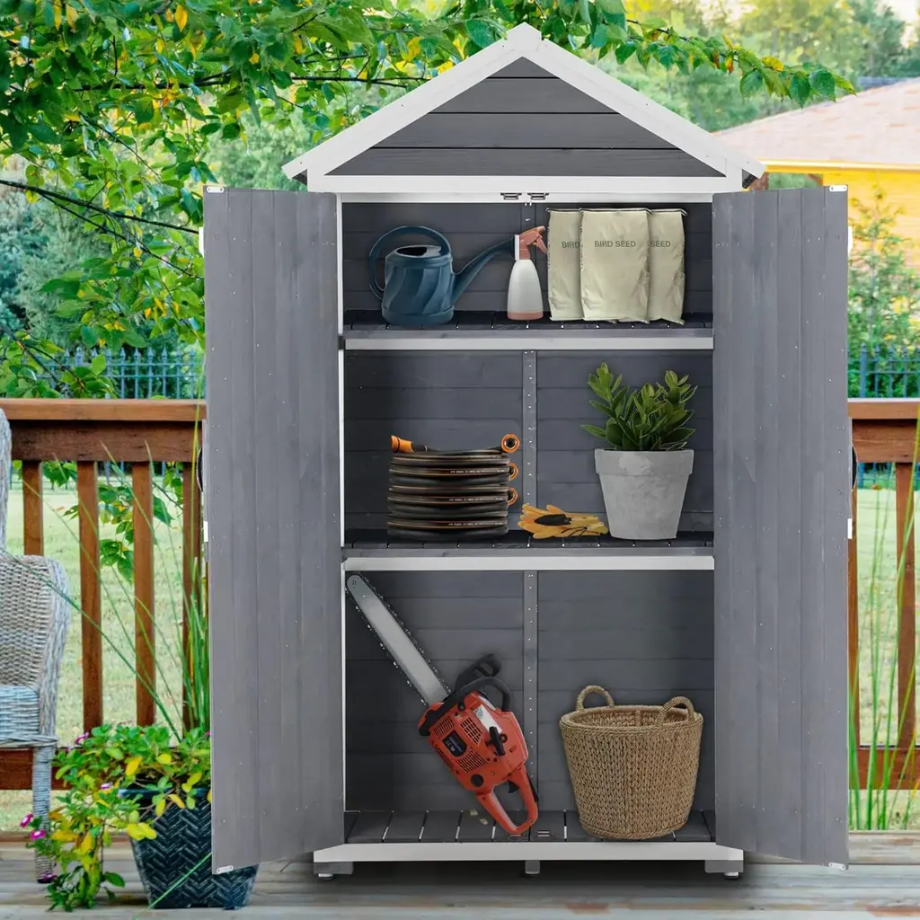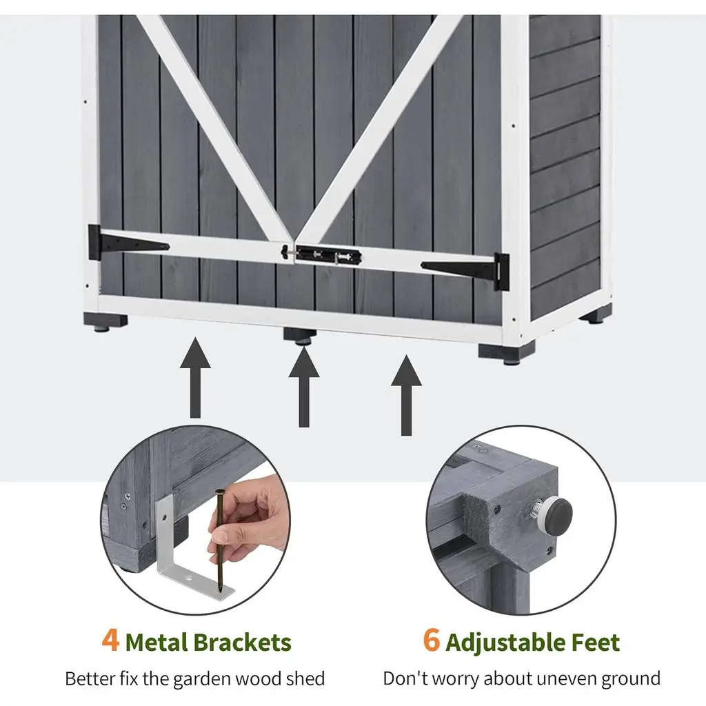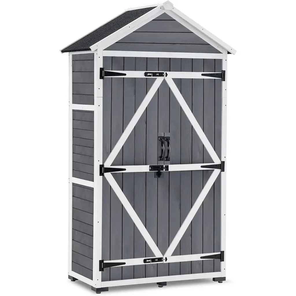 Mcombo Outdoor Vertical Storage Cabinet Tool Shed With Lockable Double Doors - Grey