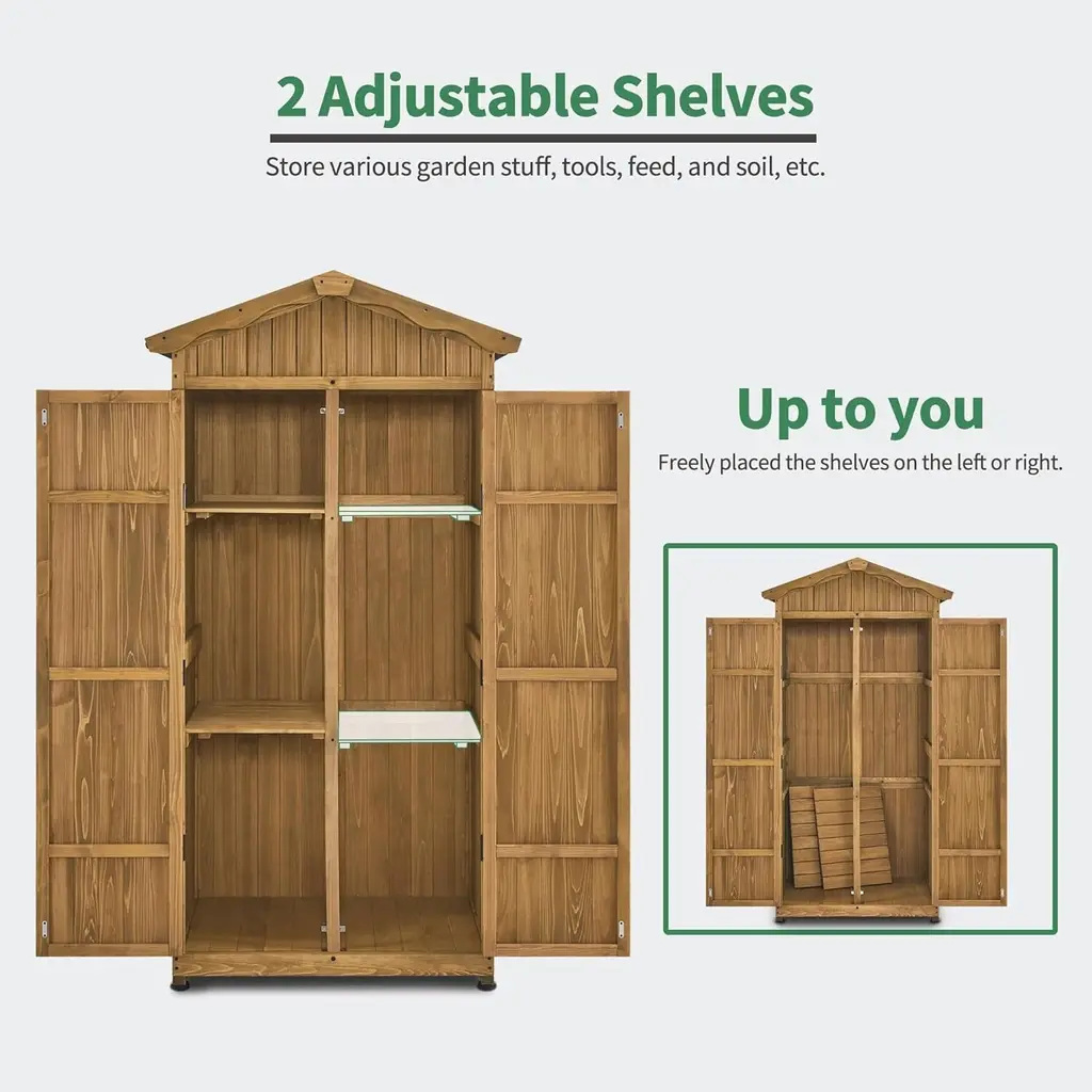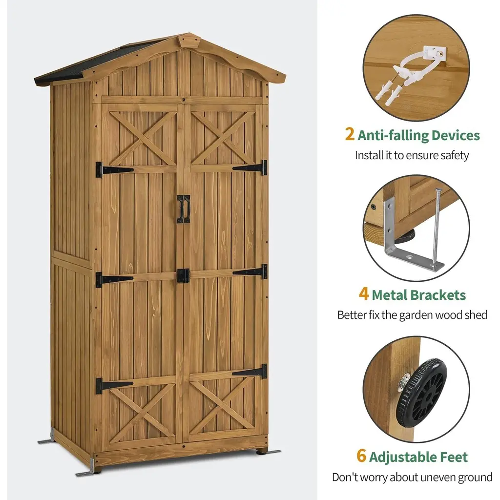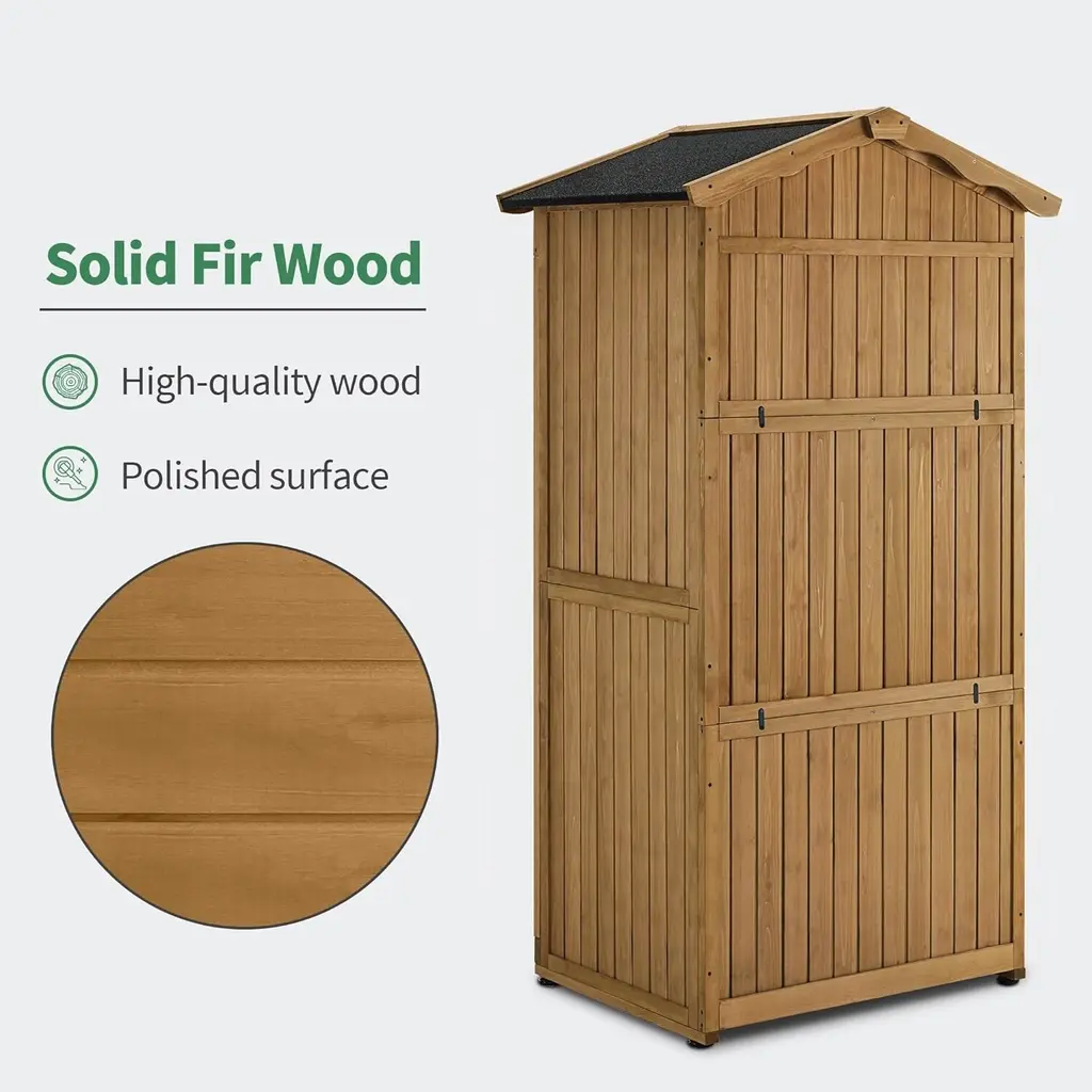 Mcombo Outdoor Wooden Storage Cabinet With Removable Shelves, Tall Tool Shedwith Waterproof Asphalt Roof - N/a - Yellow