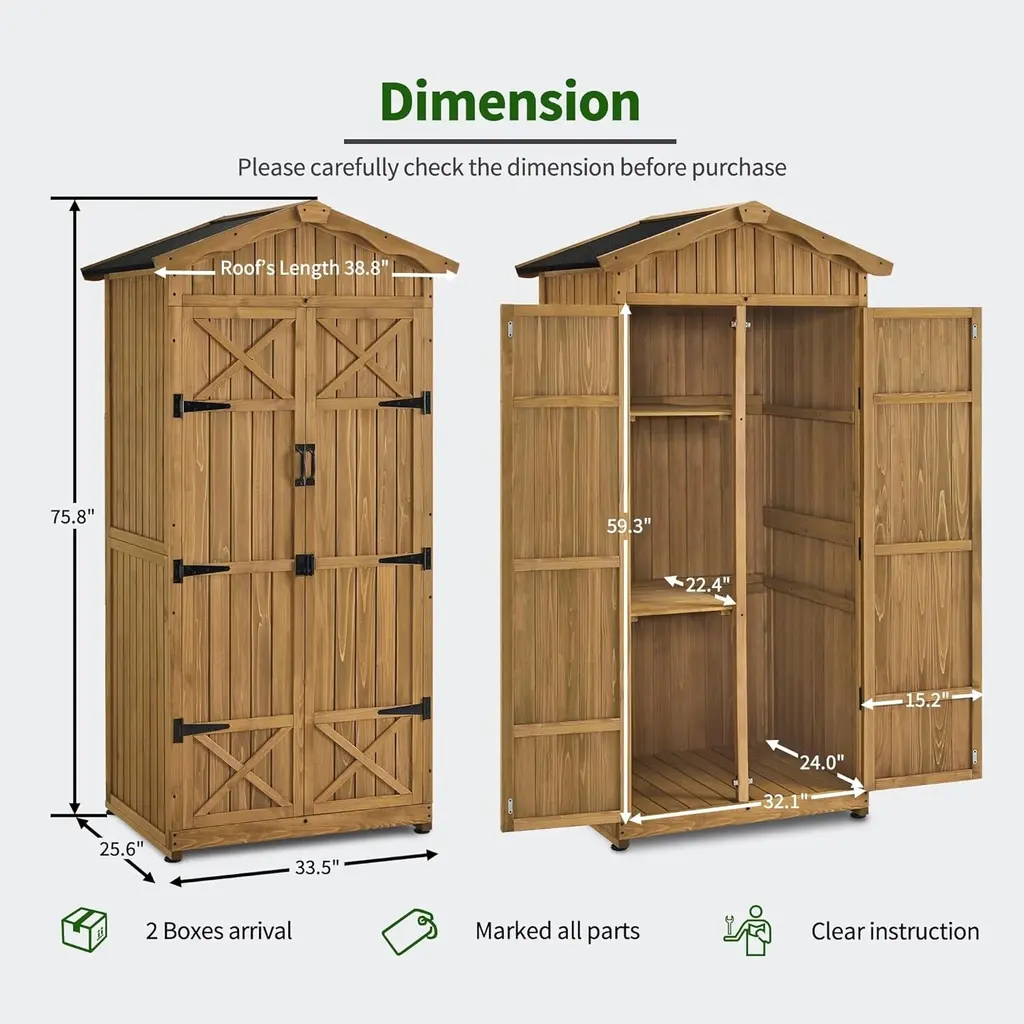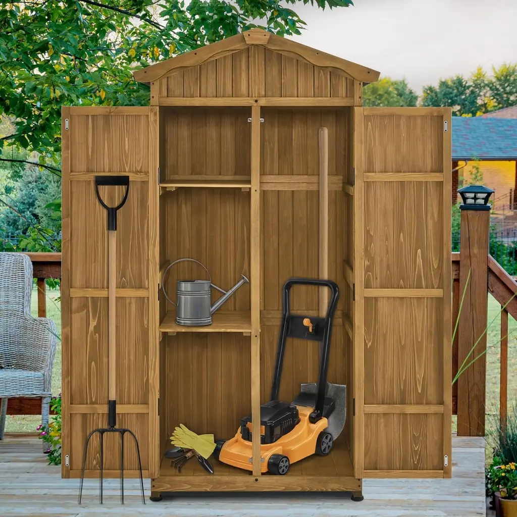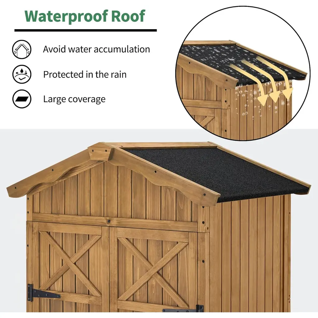 Mcombo Outdoor Wooden Storage Cabinet With Removable Shelves, Tall Tool Shedwith Waterproof Asphalt Roof - N/a - Yellow