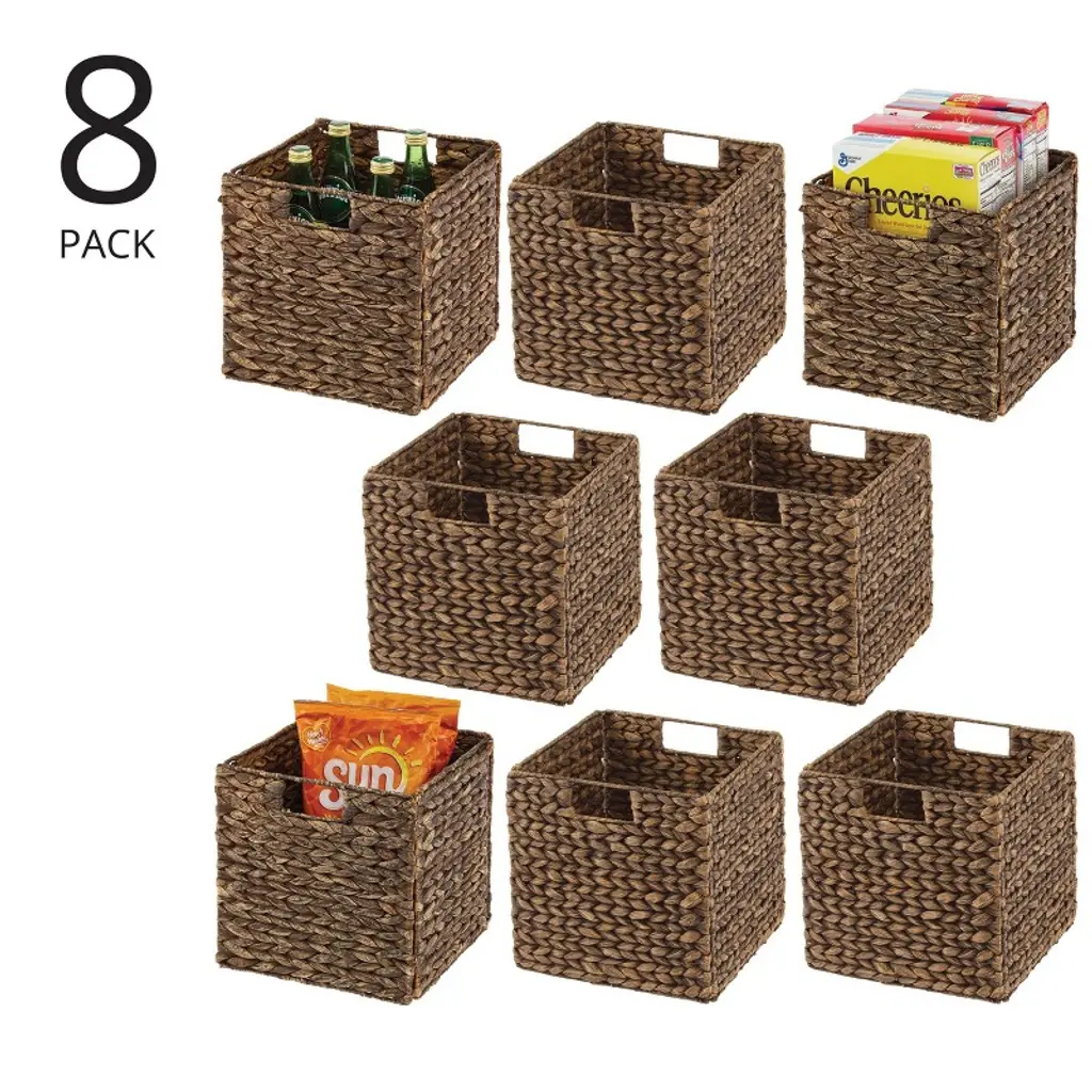 Mdesign Woven Hyacinth Kitchen Storage Organizer Basket Bin, 8 Pack, Brown Wash