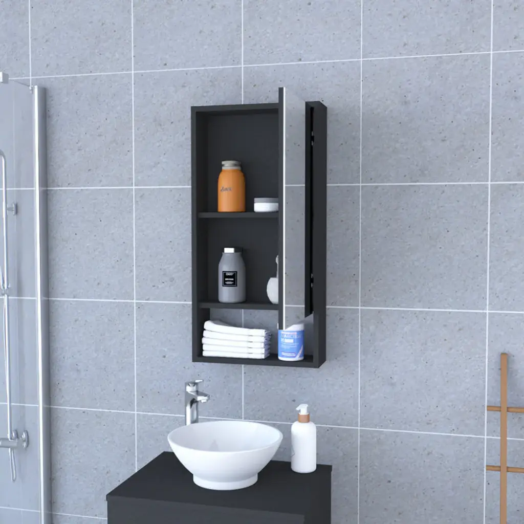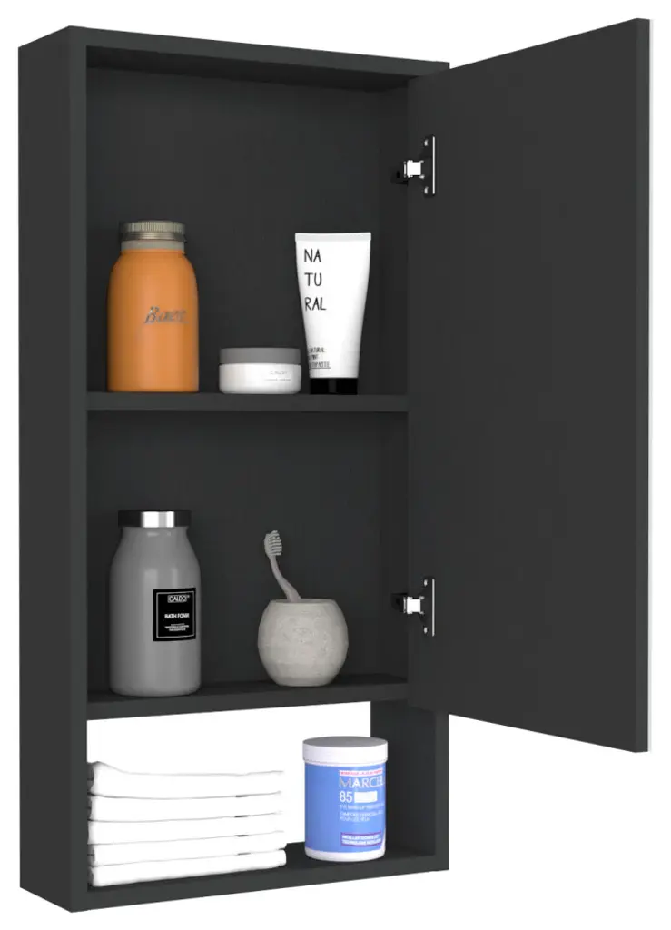 The Irvine Medicine Cabinet is a modern and elegant piece that gives you a stylish look in your bathroom. A functional and large mirror medicine cabinet that will help you to keep your bathroom organized and well maintained, and protect your things from the regular exposure to water and humidity found in a bathroom. Designed with Black manufactured wood.Dimensions:Height: 35,4"Width:" 17,9"Depth:" 5,6"Furniture Type:"Ready to assemble (full assembly required).Certifications:"CARB phase II compliant " TSCA Title VI Compliant.Warranty: 1-year warranty coverage in wooden parts- 1-year warranty coverage in hardware pieces since its manufacturing date found in the lot number printed in the product box.Shipment details:"Free shipping to the 48 contiguous states - delivery time: Between 2 and 14 days depending on the customer''s location, season and weather factors.Other details:''this product does not include decorative or background elements; Check that the box is in good condition, well packed and check with the help of the manual that the corresponding parts have been included; For more information regarding warranty, shipment details, cancellations, returns and replacement parts go to the bottom section of our website to learn more; Installation and Assembly Instructions included.