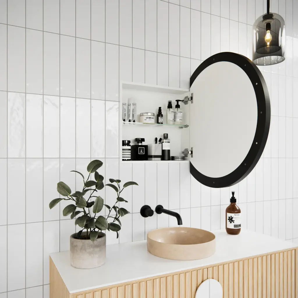 Create a sense of calm and relaxation in your bathroom with the Juno round mirror medicine cabinet. Designed to be recessed or mounted on the wall, this elegant vanity cabinet features a powder-coated rust-resistant steel frame and a circular mirrored door. In addition, a glass shelf makes it the perfect choice to keep your products hidden out of sight. With the Juno mirror cabinet by Glass Warehouse, your bathroom will become a light, bright and stylish retreat where you can relax and unwind.
