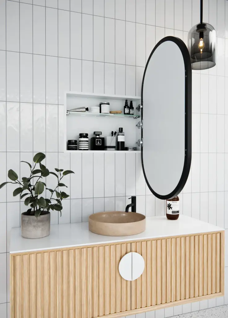 Simple and streamlined, the Nia medicine cabinet has a soft silhouette that exudes luxury and style. Graceful curves add inspiration, while the recessed design keeps your bathroom looking sleek and uncluttered with all your products tucked away out of sight. Available in a range of colors and sizes to suit any space.