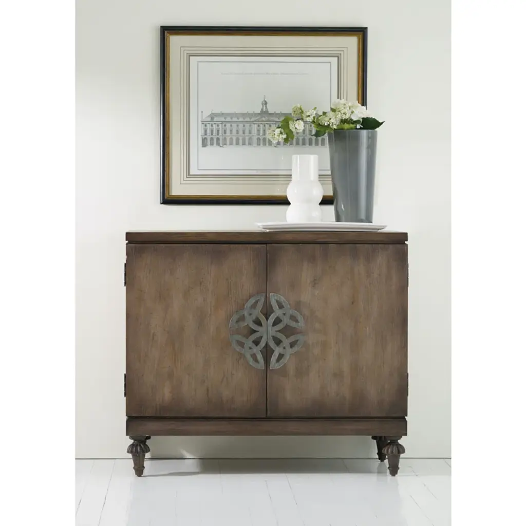 Serene yet regal in its design, the Savion Chest is punctuated by oversized medallion-like hardware and a Far Eastern vibe. Visually enhancing the depth of the finish, subtle white brush strokes are part of the Savion Chest's unique finish. Come closer to Melange, and you will discover something unexpected, an eclectic blending of colors, textures, and materials in a vibrant collection of one-of-a-kind artistic pieces.
