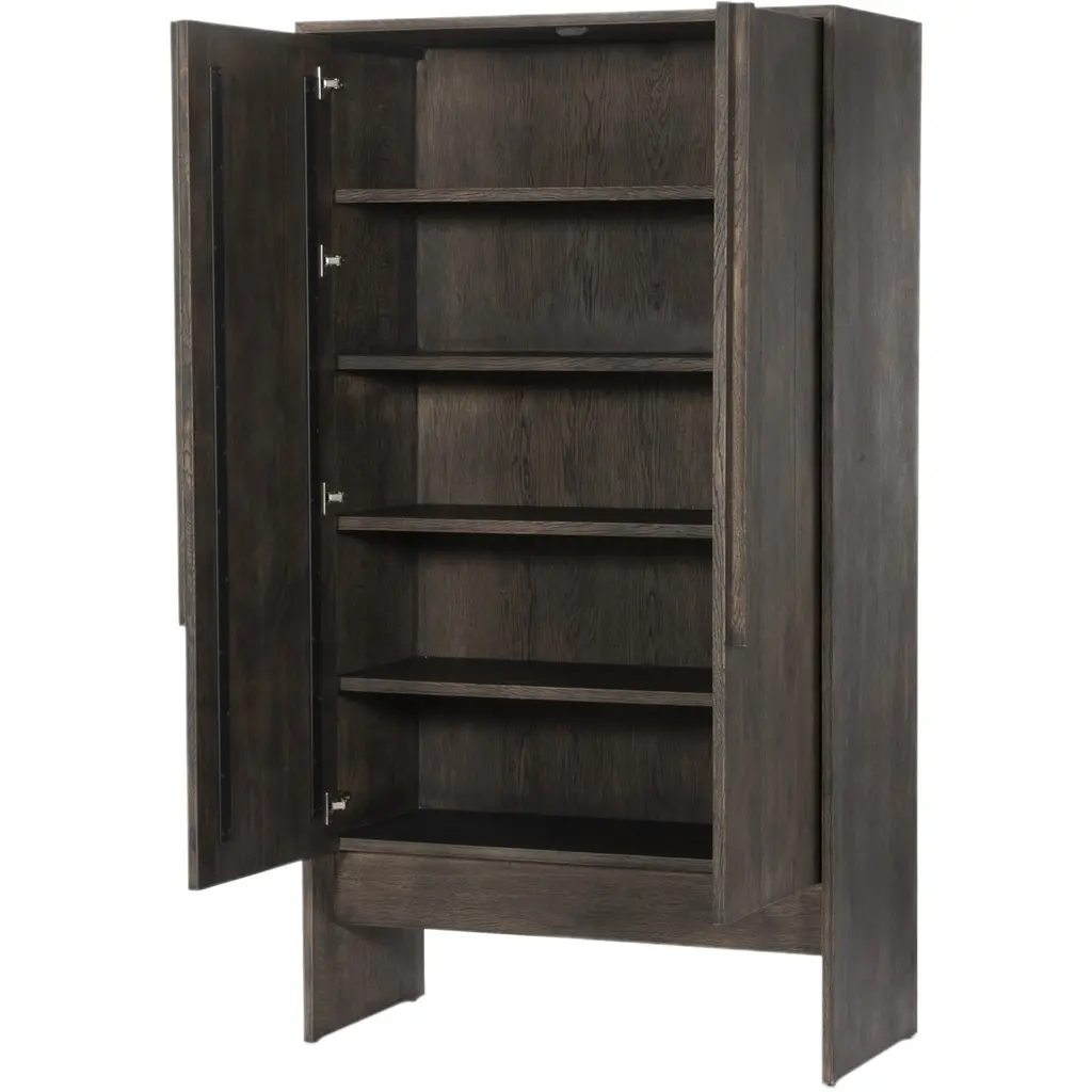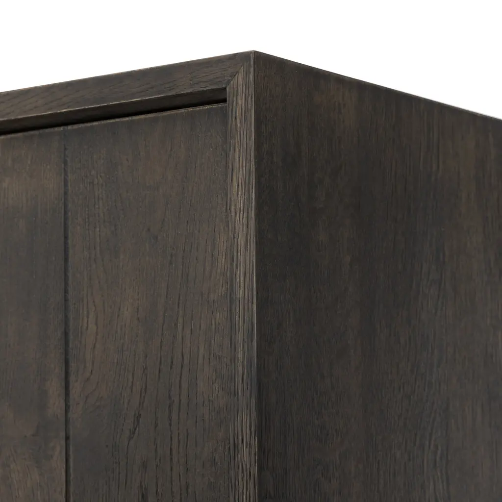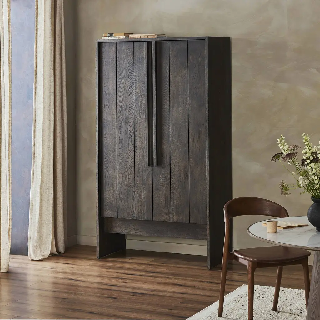 The Meridra Cabinet is a clean, structured piece that exudes plenty of presence. Crafted from oak, this storage-driven cabinetry features plank-style doors and linear hardware that elongates its sophisticated look. Its design is both functional and stylish, making it a perfect addition to any space seeking a touch of elegance and practicality.