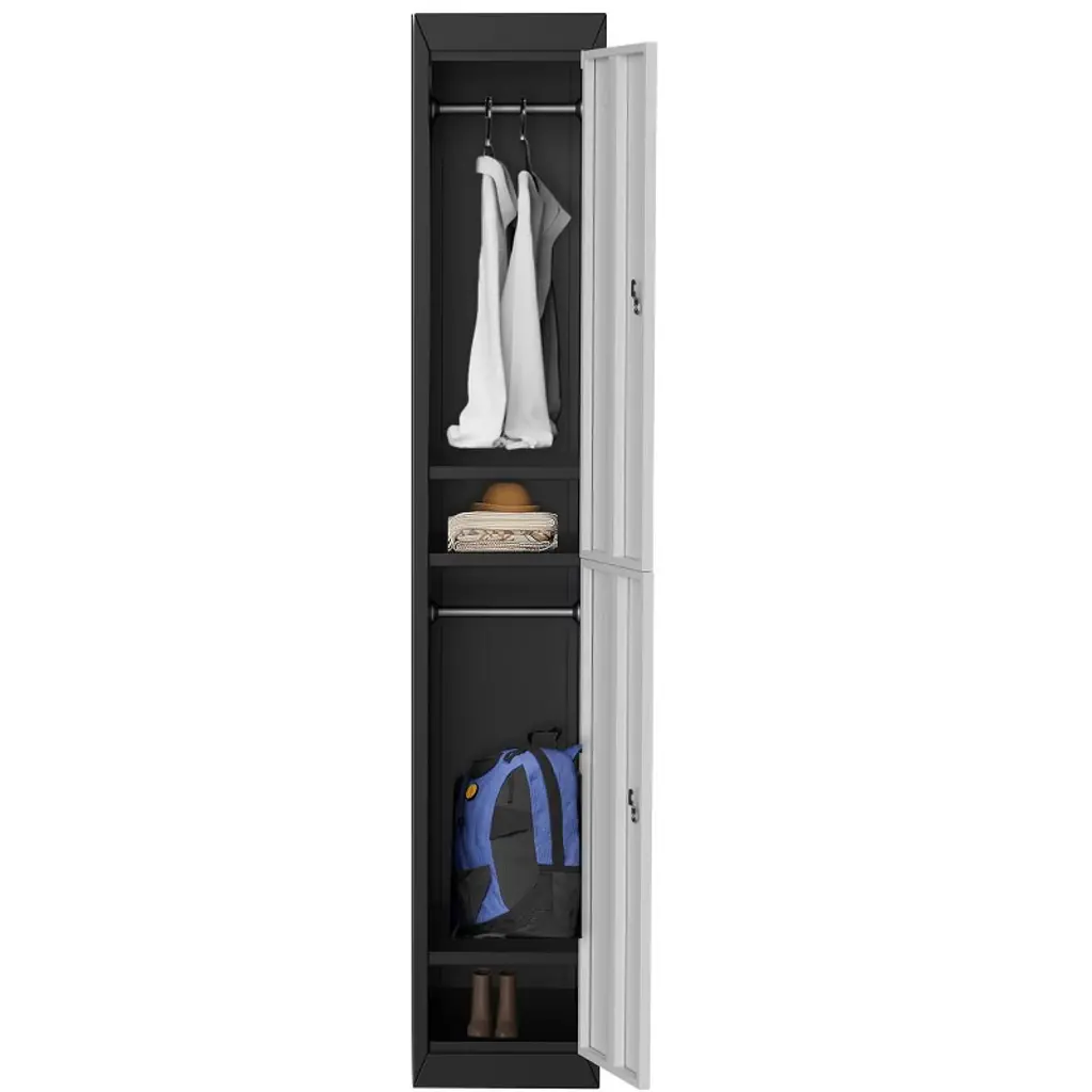 71" Tall Slim Metal Locker ¨C Heavy-Duty Storage Cabinet with Hanging Rod & 2 Shelves, Lockable for Office, Gym, or School-2 DoorsBrand: TROPOWMaterial: Alloy Steel (Rust-Resistant Coating)Color: Light GrayStyle: IndustrialDimensions: 71"H x 20.08"W x 12"DWeight Capacity: [Specify if available]Special Features: Lockable Door ¨C Key Included Built-in Hanging Rod + 2 Adjustable Shelves Ventilation Holes ¨C Prevents OdorsAssembly: Required (Tools Included) PRODUCT HIGHLIGHTSSPACE-SAVING DESIGN 12" depth ¨C Fits tight hallways or corners 71" height ¨C Maximizes vertical storage Ideal for:? Offices (employee lockers)? Gyms (uniform storage)? Schools (student supplies) VERSATILE STORAGE? Hanging rod ¨C Coats or uniforms? 2 shelves ¨C Books, shoes, or equipment? Ventilated interior ¨C Keeps items freshDURABLE & SECURE Heavy-duty steel ¨C Withstands daily use Rust-proof finish ¨C Long-lasting in humid areas Lockable door ¨C Protects valuables EASY ASSEMBLY Labeled parts + clear instructions Minimal tools required 42.88 lbs lightweight ¨C Easy to move WHY CHOOSE THIS LOCKER?? Slim Profile ¨C Saves space without sacrificing storage? Multi-Purpose ¨C Office, gym, or school use? Secure Storage ¨C Lock included for privacy? Industrial Strength ¨C Built to last yearsPerfect For Storing: Work uniforms or gym clothes School books & backpacks Cleaning supplies or tools