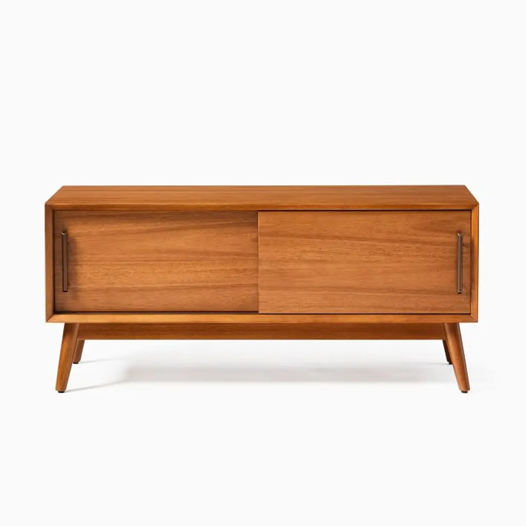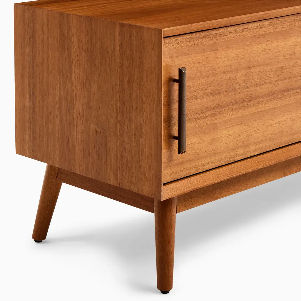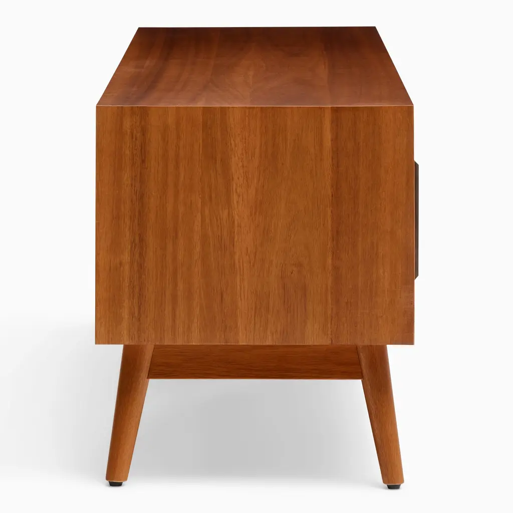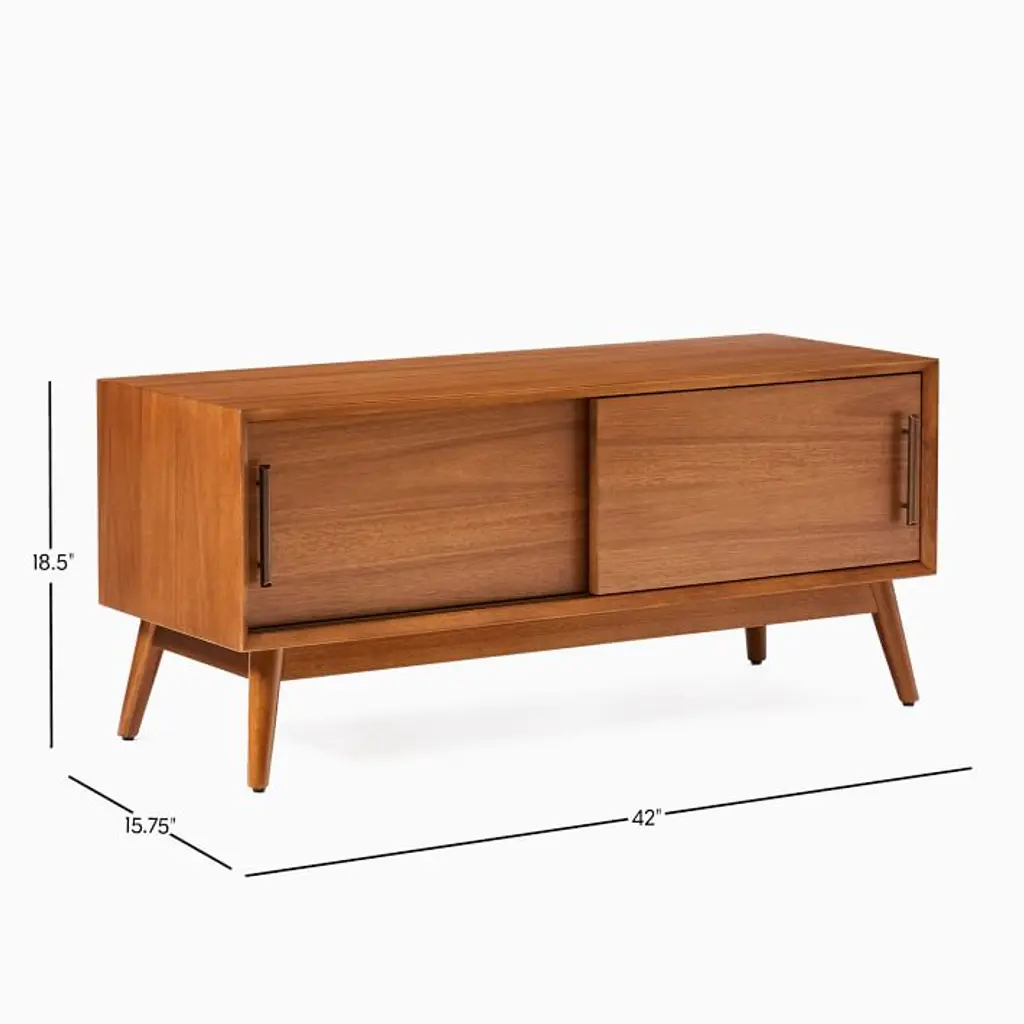 It adds retro-inspired flair to the entryway. Two roomy cabinets provide plenty of storage space. It's made from solid sustainably sourced wood. Crafted in a Fair Trade Certified™ facility.
