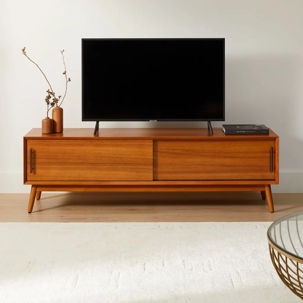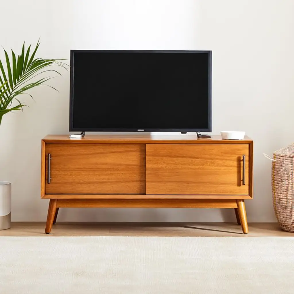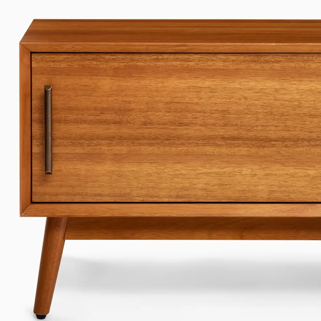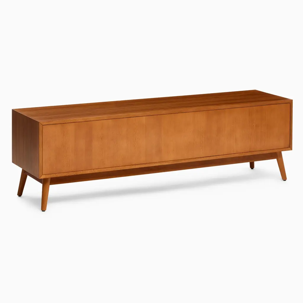 It adds retro-inspired flair to the entryway. Two roomy cabinets provide plenty of storage space. It's made from solid sustainably sourced wood. Crafted in a Fair Trade Certified™ facility.