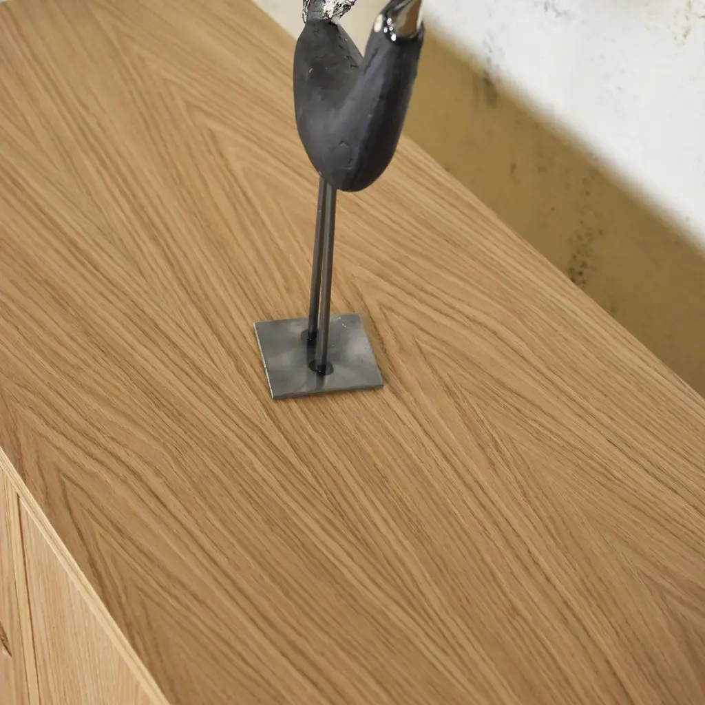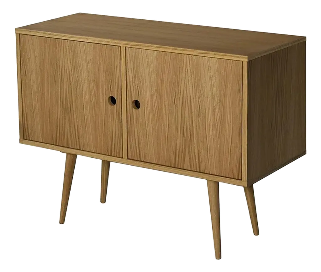 Mido Large Cabinet by PastformDimensions: D 40 x W 120 x H 75 cm.Materials: Stained and varnished wood.Available in different wood color finishes: BPA, Nobel, Brandy, Whiskey, Rum, Natura, and Schwartz. Available in two different widths: 100/120 cm. Please contact us.In the Mido Light Chest of Drawers, there is everything you need to put it into a utility space. It is neat enough to fit even the smallest interiors, yet spacious enough to accommodate numerous documents, equipment, and other trinkets we need at work and in everyday life. Its color is beautiful and bright, so it adds lightness and freshness to any interior. There are two niches in it, closed with fronts with a round hole. There is one height-adjustable shelf in each.Clearly visible influence of the 1950s /1960s is not a coincidence in our collection. We find a lot of inspiration in this design and admire its simplicity, sophistication, and timelessness. Our furniture, however, appeals not only to retro-style lovers but also to fans of extraordinary accessories, who want to arrange their apartment and make it interesting. An additional advantage of our products is high quality and careful workmanship.The furniture is entirely made of wood covered with oak veneer. Our furniture is made of only natural materials, so individual models may differ in the arrangement of grain and color. Mido Light Chest of Drawers is finished with stain and varnish.Rooted in a good traditionThe Pastform Furniture studio dates back to the 1990s. Having in mind the idea of a traditional family company, Dawid Gełeta established a carpenter’s shop in 1997. The company specializes in the manual production of utility furniture. Times have changed and with them, fashion has changed. In 2016 we decided to change the direction, following the growing demand for vintage furniture.My name is Mateusz Gełeta, I am the son of the carpenter who founded the company. From an early age, I have watched my dad’s work. He put his whole heart into creating furniture, polishing every detail with his strong hands and making sure that nothing escaped our attention before sending the product to the customer. He made sure that every piece of furniture was perfect and refined. We remain true to these principles.Following the blow, I decided to create a harmonious combination of modern quality with the classic style of the 1960s. This is why I designed and created a unique collection of wonderful furniture, which, in addition to its well-thought-out functionality, also creates a perfect design and composes original arrangements.The golden age of interior designIn the 1960s interiors used to take on a very characteristic touch. All over the world, this style was called a mid-century modern, locally it was simply – retro furniture. Simple, elegant minimalistic form, without unnecessary decorations and splendor. Decorating with the idea of an uncomplicated composition, it allows for an undisturbed selection of the arrangement accessories and emphasizes a high level of functional comfort. One might say – a perfect piece of furniture. Comfortable, hiding surprisingly many items despite quite neat dimensions, made of noble species of wood and created by hand, with a focus on carefully refined details. No wonder its popularity is growing so much.Unique, refined, with a soulEach piece of the Pastform collection represents a unique style. Thoughtful concept of usable comfort, refined details, carefully selected raw materials, and proven accessories. We use only high-quality boards which we veneer with oak, American walnut, and other durable wood species. They are carefully oiled with the best, hard, ecological oil waxes, giving the furniture its final shape. This technology brings out the natural beauty of wood, exposes the grain and unique design of each piece, highlights the beautiful color, and allows to achieve timeless durability.This is how unique, thoughtful, and refined furniture with a soul is created.Thinking about futureWe are trying to positively create the world of which we are a part, contributing to a better tomorrow. We cooperate with local suppliers, support small companies and production plants, care for ecology, and respect the needs of the land. We always strive to establish long-lasting, based-on-trust relationships with customers and contractors.Flexible, with openness and heart on handWe sincerely like what we do. Playing with the shape, structure, and texture of wood is fascinating. Creating new arrangements and coming up with innovations that will meet your expectations. We are proud of our products and we are happy to present you with our collection of refined furniture.All our vintage furniture can be made on request – fulfilling the boldest dreams and fantasies. See our offer and if you want to know more, feel free to contact us. We are waiting for you!