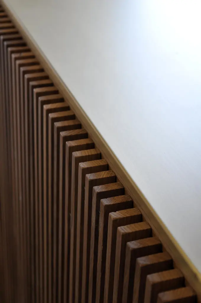 The famous travel tales by Marco Polo, entitled Il Milione, relate the storyof Venice encountering the Orient, whose cultural influences found their highestexpression in architecture, applied arts, and manufacturing. Fabrics, carpetsand embroideries with an exotic flavor made their appearance in Venice,the link between two civilizations: a noble weave and warp and weft, evokedby a collection of essential containers, enhanced by doors made of wooden slatsalternated by brass details.Design by Debonademeo for MedulumIl celebre resoconto dei viaggi di Marco Polo, intitolato Il Milione, raccontal’incontro di Venezia con l’Oriente, le cui influenze culturali hanno avuto la massimaespressione nell’architettura, nelle arti applicate e nella manifattura. A Venezia,cerniera fra due civiltà, comparvero tessuti, tappeti, ricami di sapore esotico:un nobile intrico di trama e ordito, rievocato da una collezione di contenitoriessenziali, ingentiliti da ante composte da listelli di legno alternate a dettagliin ottone.