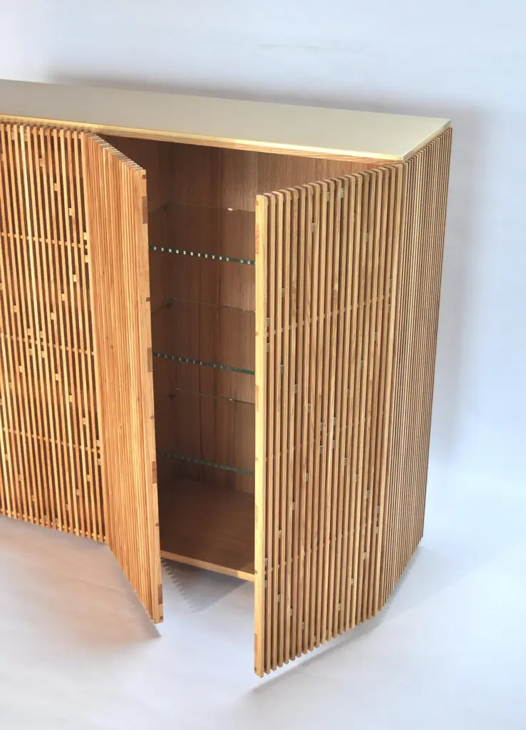 Milione Cabinet, In Oak Wood And Brass, By Debonademeo For Medulum