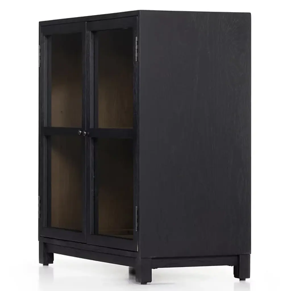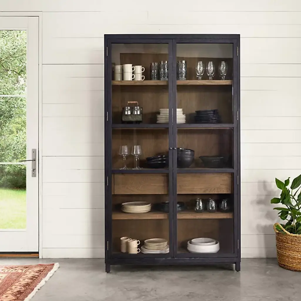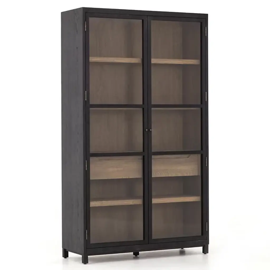 The Millie Cabinet from Four Hands brings a blend of rustic modern style and contemporary elegance to your space. Made from solid oak and oak veneer, this rectangular cabinet features a glass-paneled front that beautifully showcases your favorite items while keeping them dust-free, with a pullout drawer for more storage. The natural wood grain highlights its timeless appeal, making it a versatile piece for any room. Whether used to display decor, store dinnerware, or organize books, the design adds a touch of sophistication to your home.