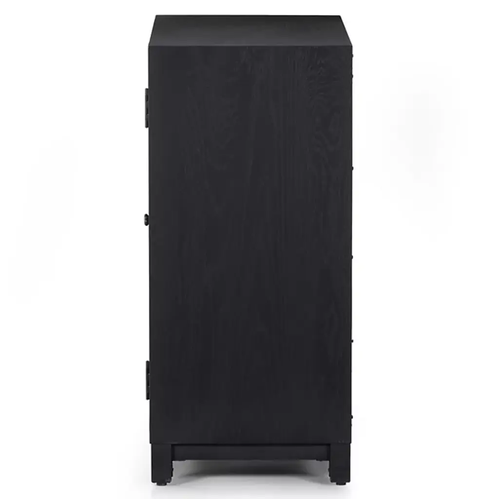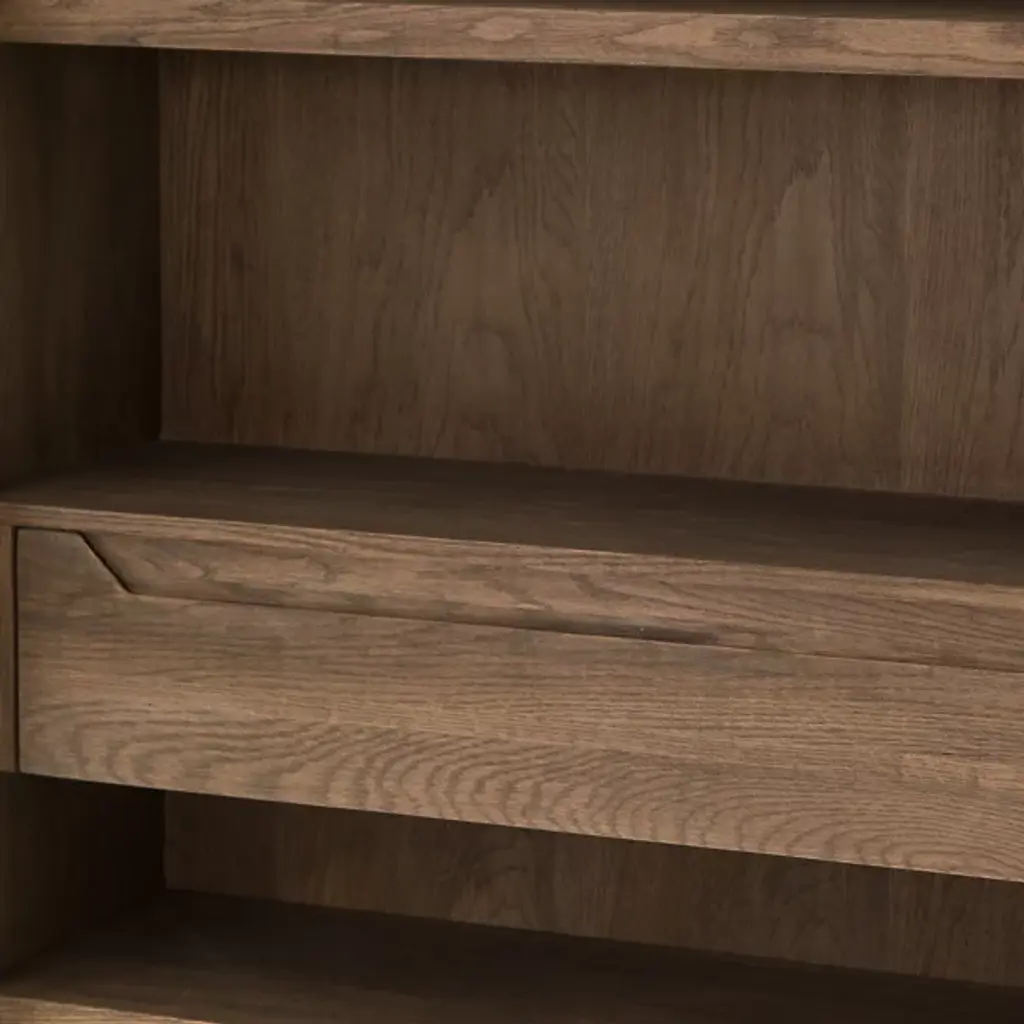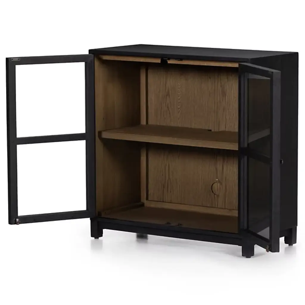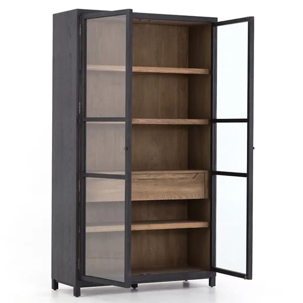 The Millie Cabinet from Four Hands brings a blend of rustic modern style and contemporary elegance to your space. Made from solid oak and oak veneer, this rectangular cabinet features a glass-paneled front that beautifully showcases your favorite items while keeping them dust-free, with a pullout drawer for more storage. The natural wood grain highlights its timeless appeal, making it a versatile piece for any room. Whether used to display decor, store dinnerware, or organize books, the design adds a touch of sophistication to your home.