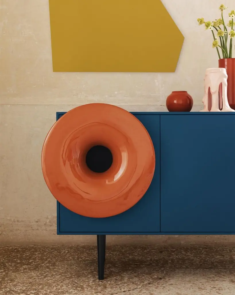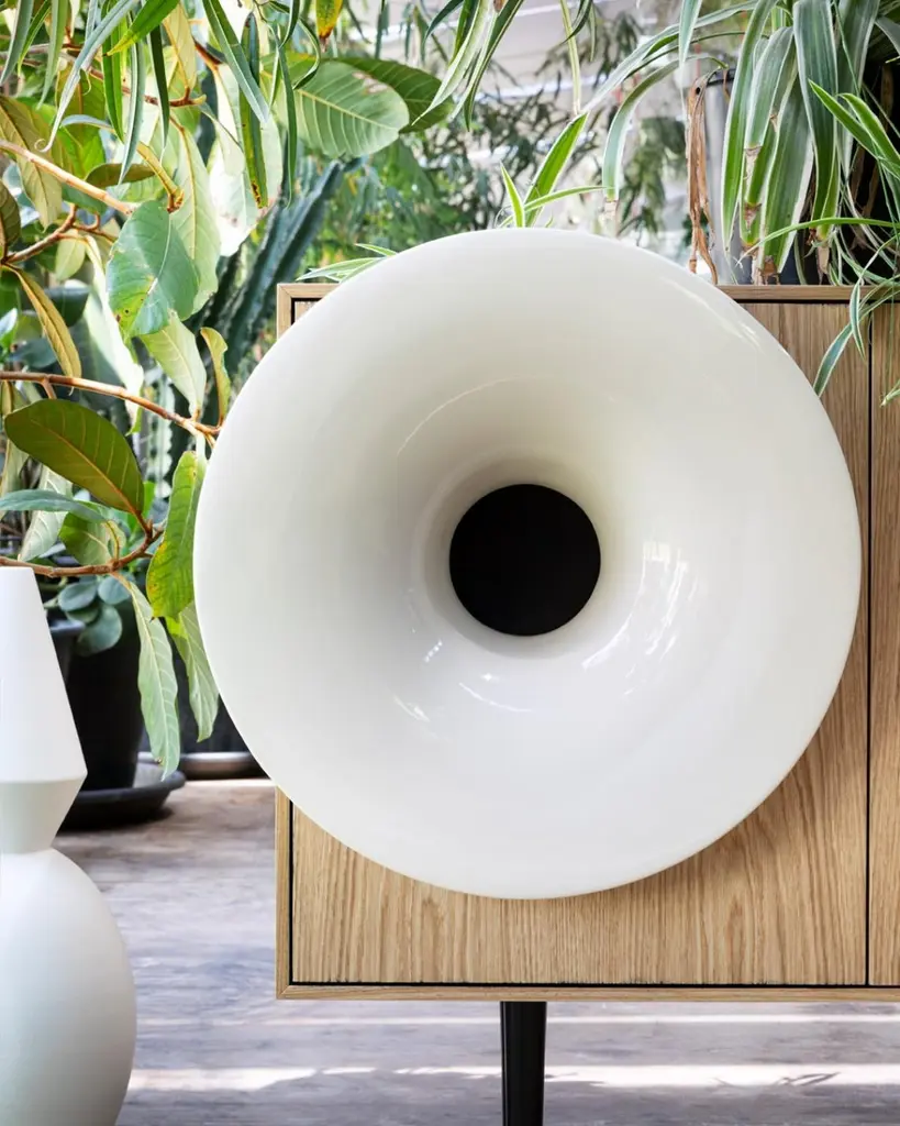It almost feels like a ritual. Sitting down, with soft light, and pressing play on your smartphone. Then letting vibrations do their thing.Caruso invites you to sit down, take a break, and find again the magic to hear and see an object that plays good music. It stands on the edge of irony, a little futuristic, a little nostalgic, managing to combine hi-tech to the living for a multi-sensory décor.Additional Information:Material: Wood, ceramicFinish: Black ashTrumpet: Terracotta glazed ceramic , Gold or copper.Dimensions: 106 W x 55 D x 89 H cmAvailable in other structure options:Legs Finishing:• Lacquered NeroStructure Finishing:• Lacquered Antracite• Lacquered Bianco• Lacquered Bisanzio• Lacquered Bloody Mary• Lacquered Burro• Lacquered Creta• Lacquered Grigio Seta• Lacquered Mattone• Lacquered Nero• Lacquered Nuvola• Lacquered Pino• Lacquered Pompei• Lacquered Zucca• Ash• Black Ash• Canaletto Walnut• Flamed Oak• Heat-Treated Oak• Vintage OakDIMENSIONS:156,5x55x89h cm