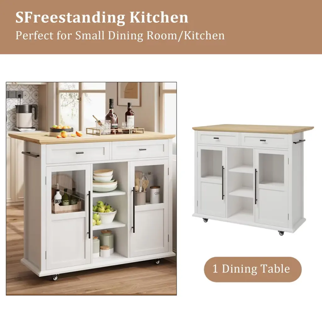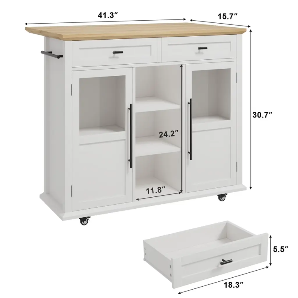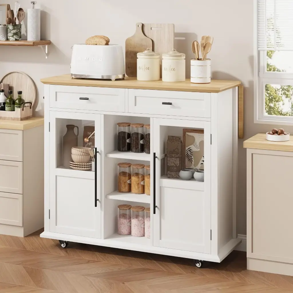 Maximize kitchen efficiency with this Mobile Kitchen Island Cart. Measuring 41"×16", it features 2 cabinets, 2 drawers, 3 shelves, and a foldable drop leaf for extra workspace. Solid wood construction ensures durability, while lockable casters provide stability and easy mobility. Ideal as a prep station, dining cart, or bar trolley, it combines style and functionality, fitting perfectly in kitchens, dining rooms, or multipurpose spaces. Quick assembly makes it ready to use in minutes.