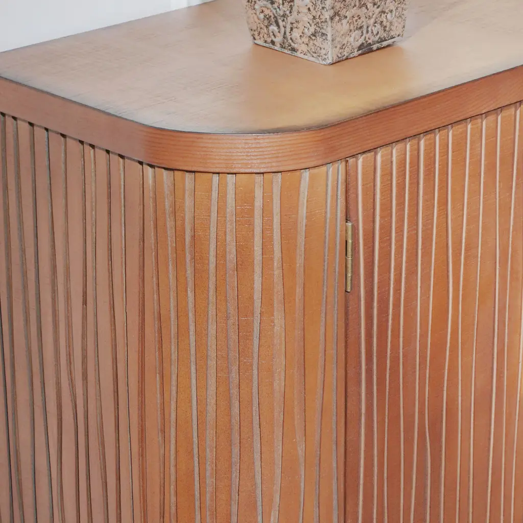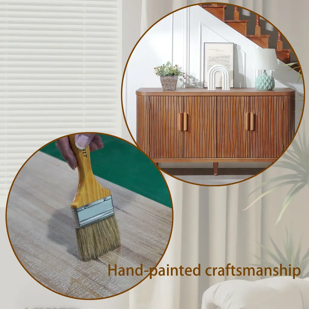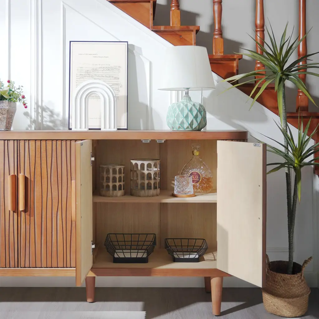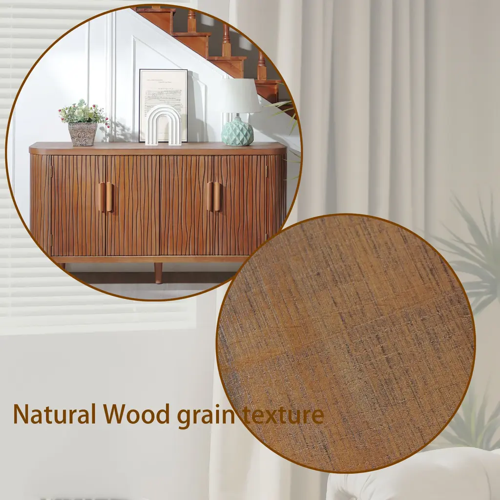 Stylish Modern Accent Buffet Cabinet - The waveform patterned doors cabinet aesthetics and practicality with clean, neat lines that meet the aesthetic standards of every era. Compatible with most room styles, it will bring an eye-catching feel to your living room, dining room or office. The minimalist style make it a great addition to any room in your home, whether you're going for a contemporary or traditional look.; Large Storage Space - With an adjustable shelf and wide desktop, this storage cabinet provides ample storage space for all your belongings. This buffet cabinet have 4 doors and 4 big storage space. with 2-layer structure inside the cabinet, which provides ample storage space for spice jars, red wine, snacks, cans, cutlery, tea cups and other items to keep your home space . Tips : the interior shelf is adjustable with 2 height options to fit your storage needs.; Versatile Usage - This sleek and space-saving cabinet can be used in a variety of ways to suit your needs. Whether you need extra storage in your entryway or a stylish accent piece in your living room, this cabinet has got you covered. Except for being a sideboard buffet storage cabinet in your dining room. It can be used as a drawer dresser in the bedroom, black buffet cabinet and porch in the living room, kitchen sideboard cabinet, office cabinet, etc., bringing convenience .; Sturdy Buffet Cabinet - The storage cabinet unit is made of high-quality wood panels, which are very sturdy and will help you to use it for a long time. And the 4 solid wood legs add an extra layer of stability and support. Meanwhile, the accent cabinet with double doors gives you closed storage space to avoid dust. Besides, with with pop-up design, black accent cabinet doors that are easy to open and close. The load capacity of the shelf: 35 lbs; the load capacity of the top plate: 100 lbs.; Easy Assembly - No need to worry about the assembly. Detailed instruction will lead you clearly and quickly assemble this buffet cabinet. Dimensions: 59"D x 15.3"W x 32.5"H . Whether you need extra storage in your entryway or a stylish accent piece in your living room, this cabinet has got you covered.