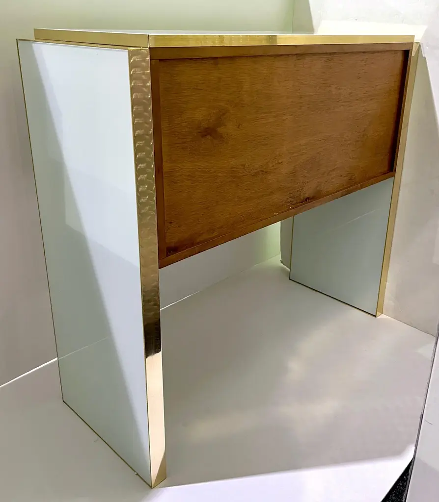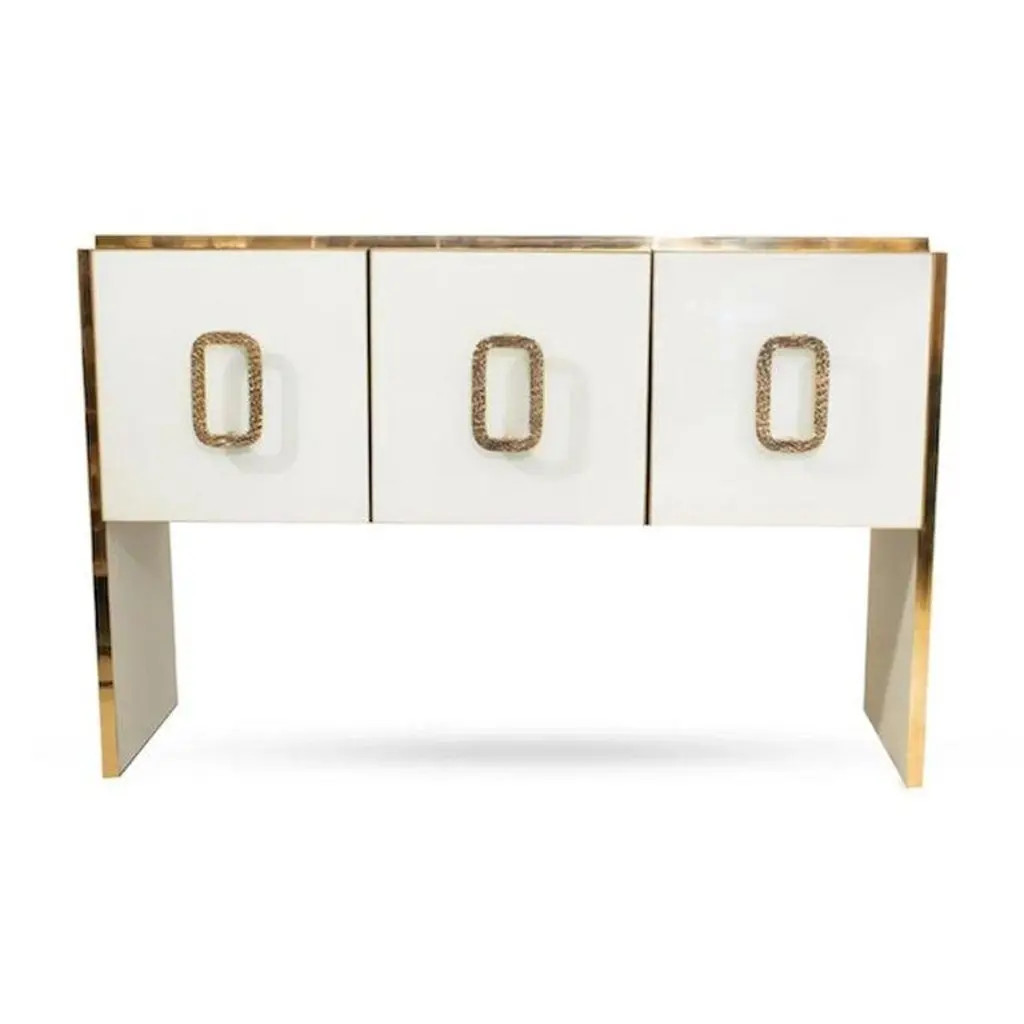 Modern Italian Custom Design Brass Edged Ivory White 2 Door Cabinet/bar