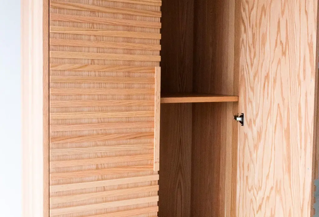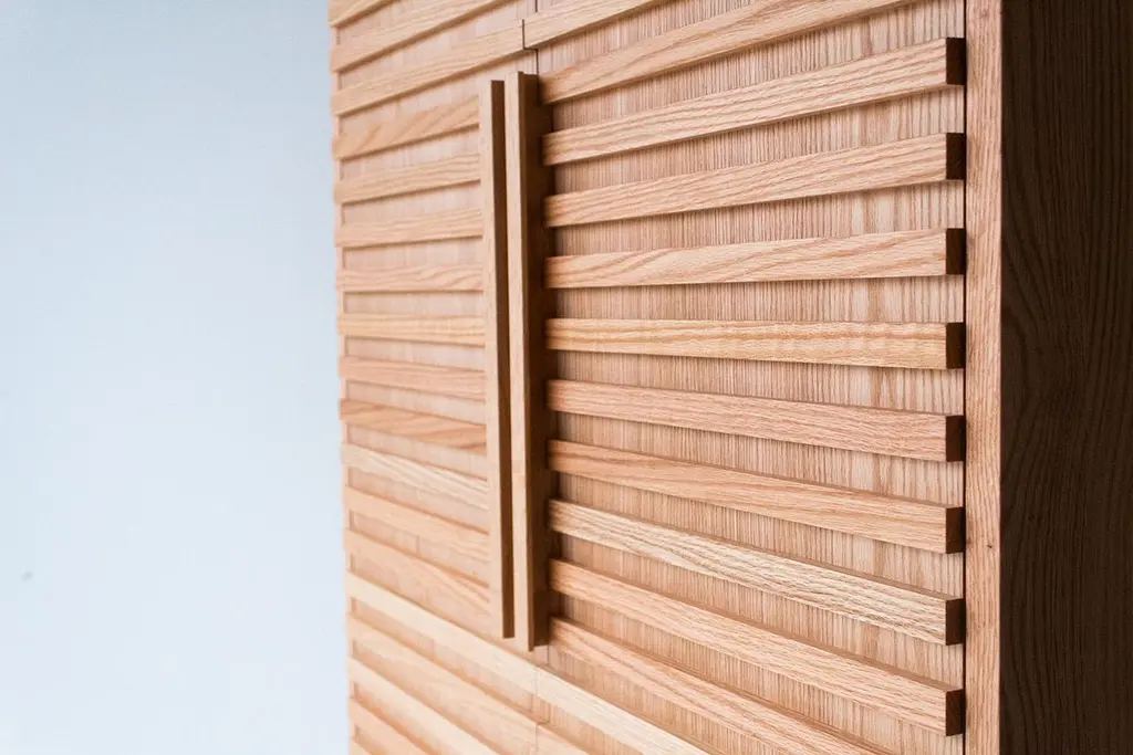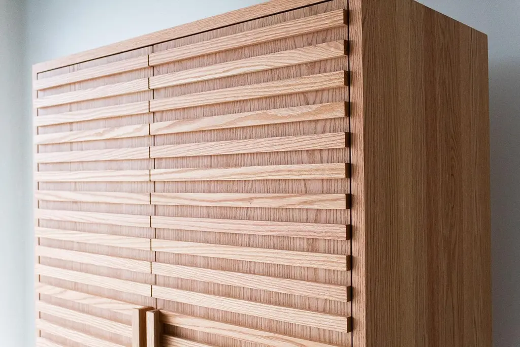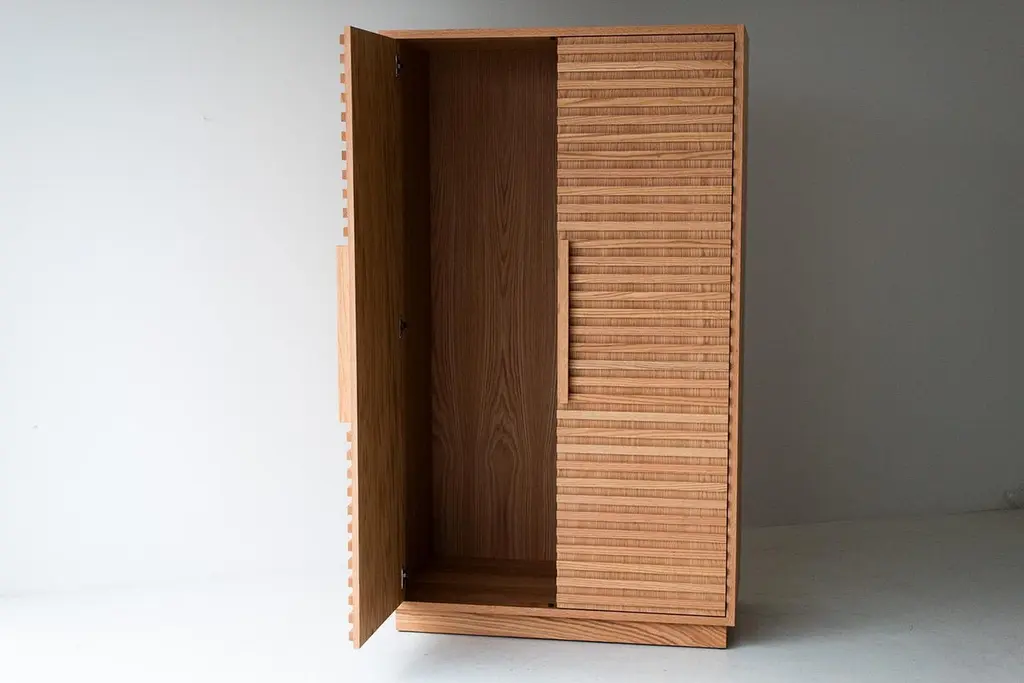 This modern oak cabinet for the Cicely collection is made in the heart of Ohio with locally sourced wood. Each cabinet is hand-made with red oak and finished with a beautiful matte commercial grade finish. It is important to us to let the natural beauty of the oak shine. The doors are finished with a beautiful solid oak slatted design across the front and veneer backs. The inside cabinet comes with 4 adjustable oak shelves for optimal storage. We absolutely love this design - fresh, modern, and looks great with any aesthetic. This is the first piece in the Cicely Collection, which will all share the beautiful slatted design.SpecsPeriod/Model: new; modernSpecs: oak, natural commercial grade finishCustomizable: Yes! It's what we do :)Dimensions H: 72"W: 42"D: 22.5".