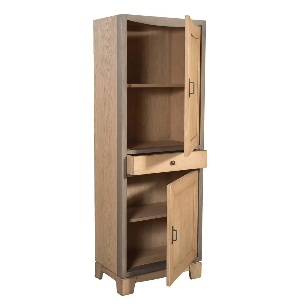 This cabinet made of solid French oak is designed by Christophe Lecomte. This "Homme Debout" (litterally "standing man", named this way because of its size) is oak stained and grey lacquered on the edges.It features one drawer and two doors mounted on hinges with integrated soft-close function.Behind each door is a shelf on cleats. The sourcing of the solid wood comes from sustainably managed French forests.GONTIER, a brand of MON PETIT MEUBLE FRANCAIS group, provides you exclusively with 100% made in France classical and contemporary pieces of furniture.The manufacture of each furniture is made accordingly to traditional French techniques of woodworking by small craft workshops in the western countryside of France (Loire Valley and Bretagne). We offer a 5 year warranty on each piece.
