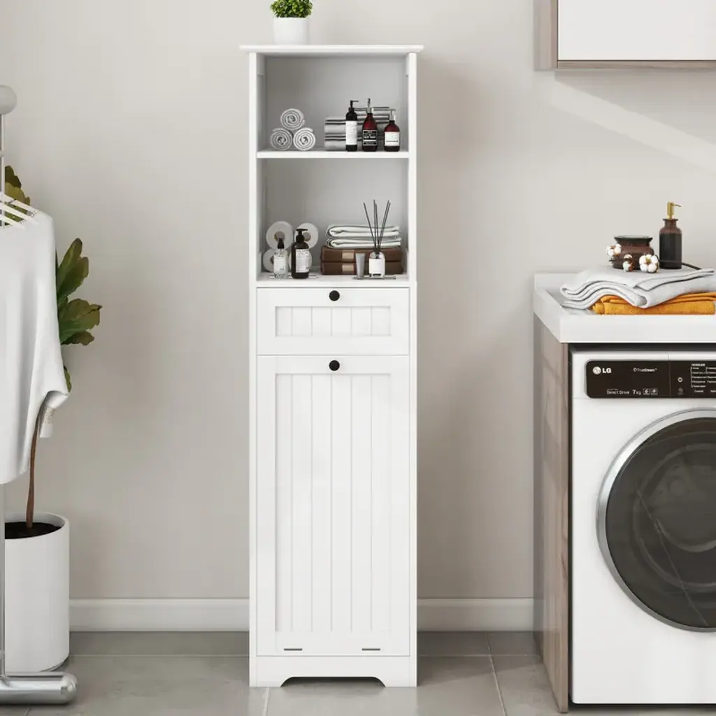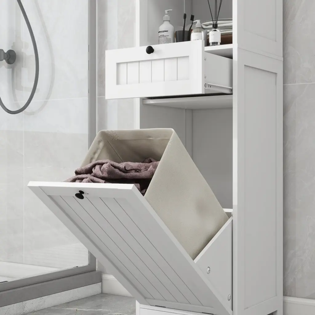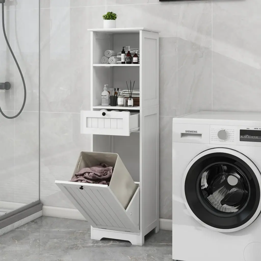 Modern One-Compartment One-Drawer Tilt-Out Laundry Sorter Cabinet - White - N/a - White