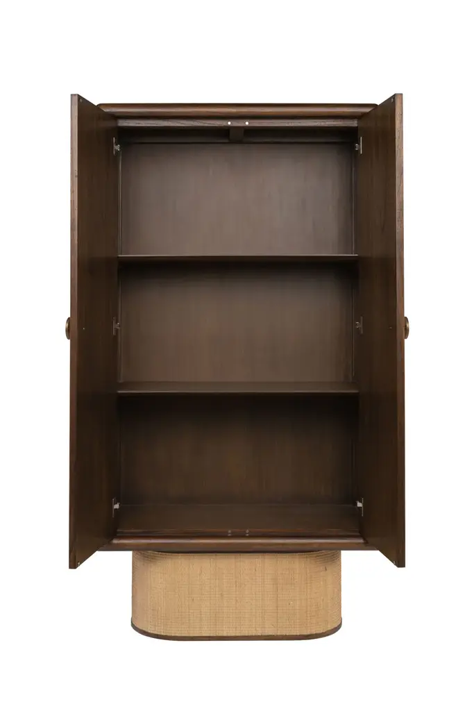 Bring warmth and beauty to your space with the Versmissen's Granada Cabinet. This exquisite piece features a mindi wood frame complemented by natural rattan accents. Featuring two doors that open to reveal spacious storage inside, it offers both functionality and a touch of natural charm. The integration of wood and rattan creates a pleasing contrast, enhancing the cabinet's visual appeal.