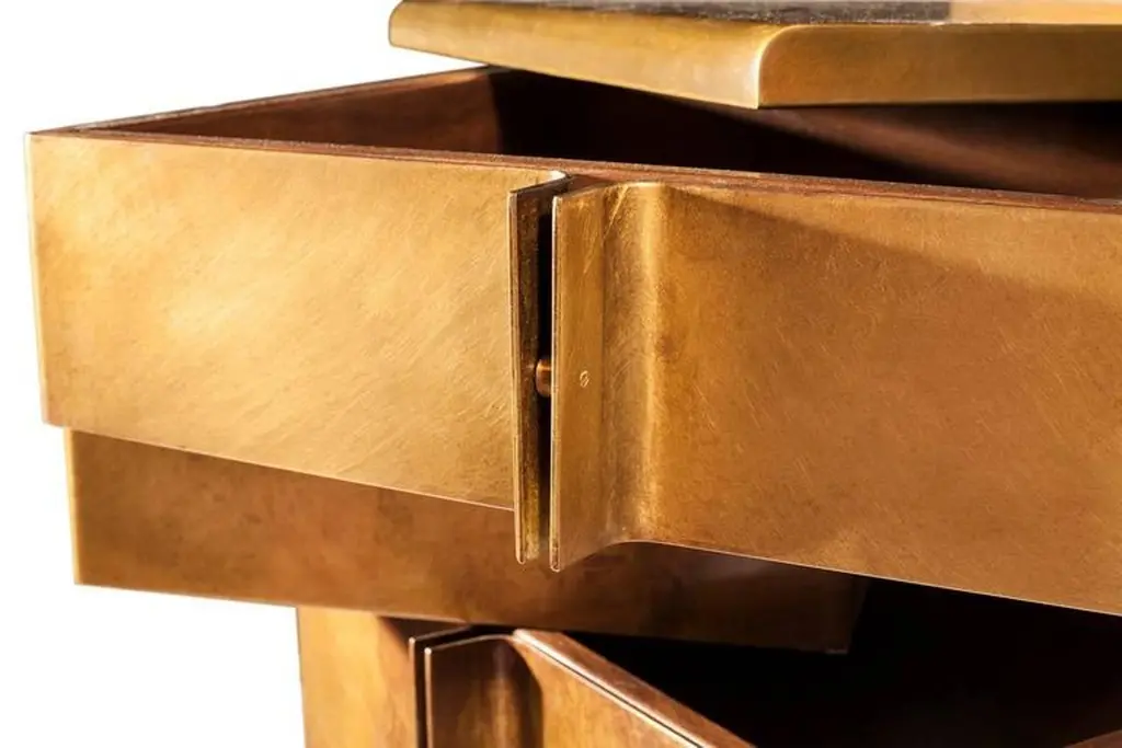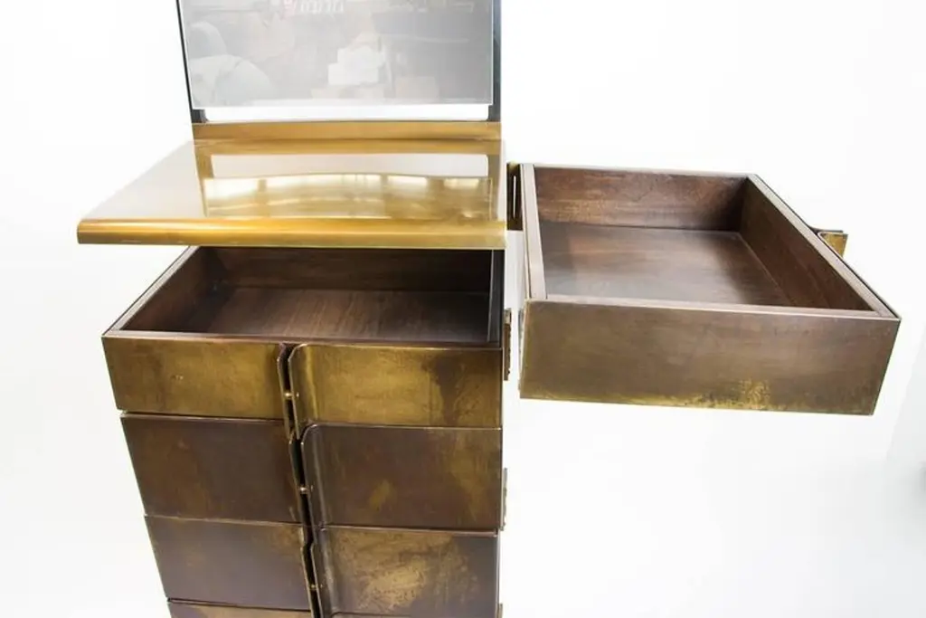 Modern Semainire Made Of Tarnished Brass With Rotating Walnut Drawers
