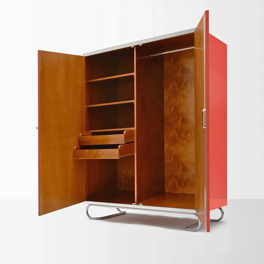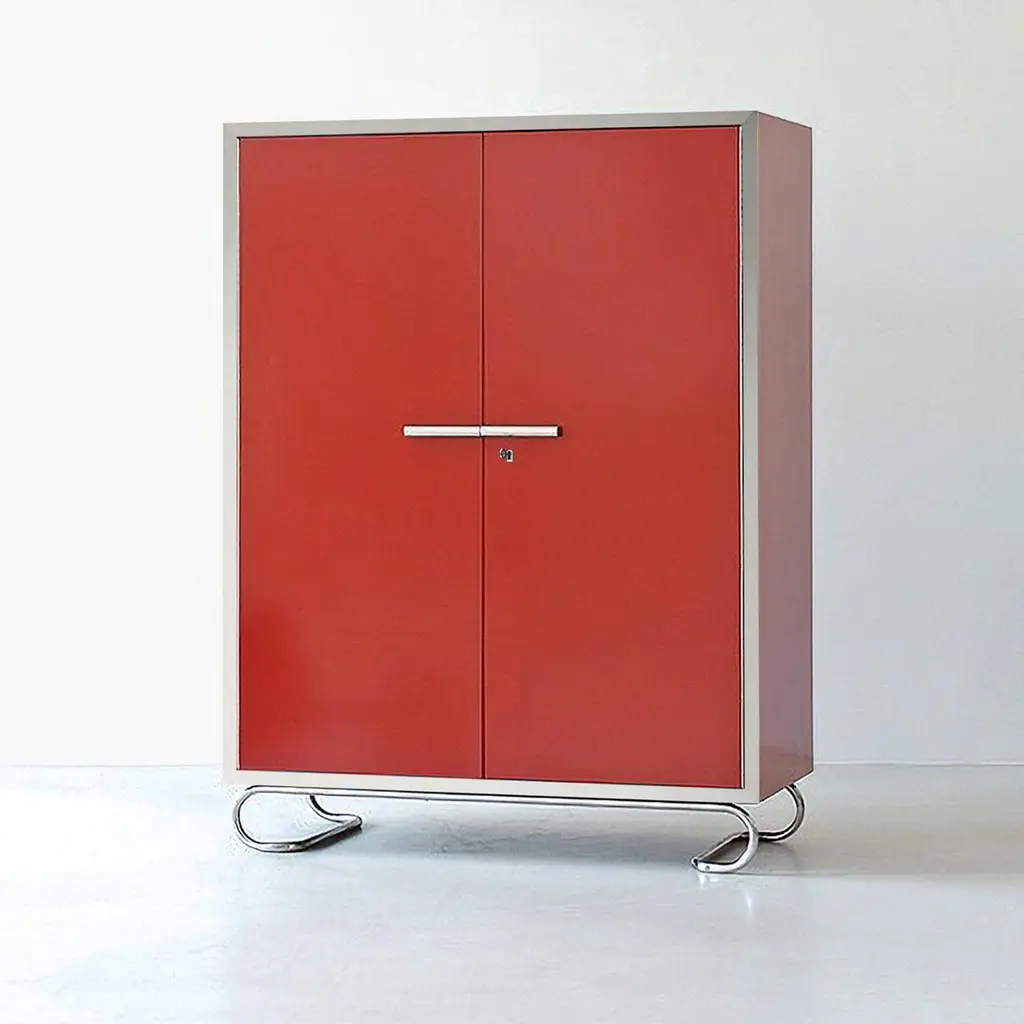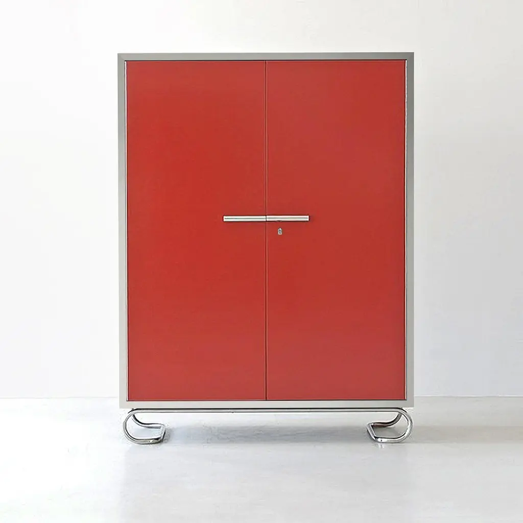 Modernist Storage Cabinet In Lacquered Wood And Tubular Steel Hardware, Bespoke