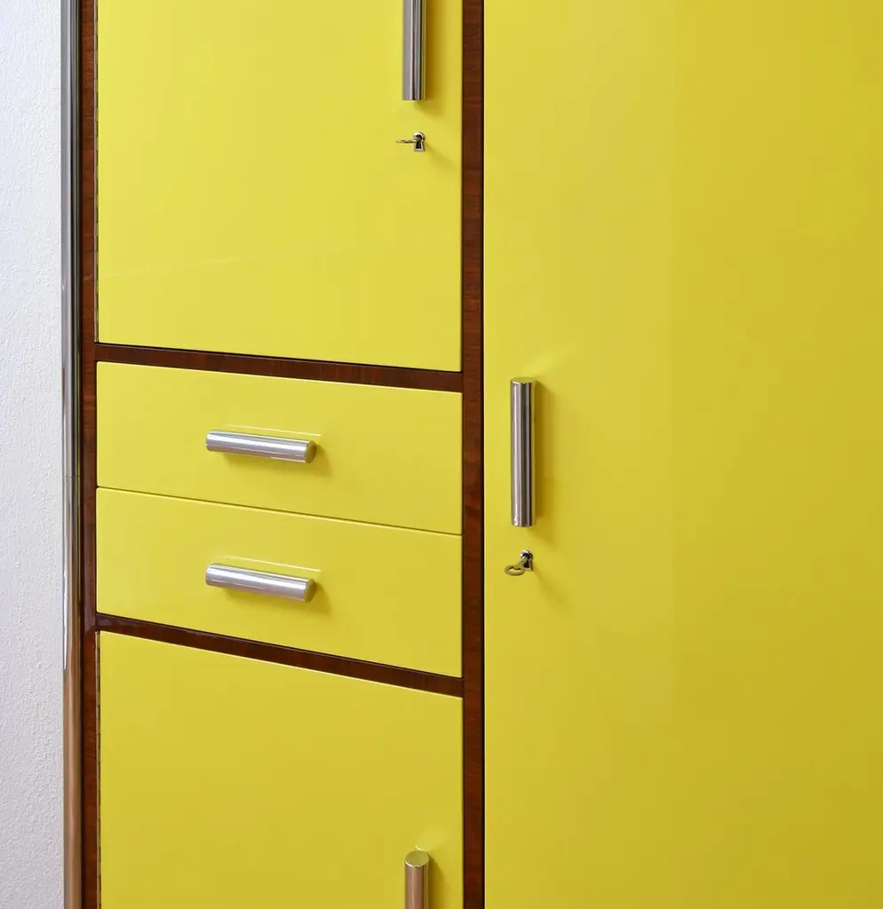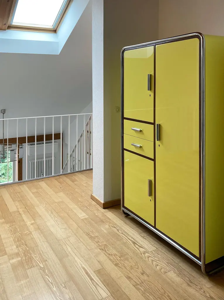 Modernist tubular steel cabined made of lacquered and veneered wood, customizable. Production time 12-14 weeks.