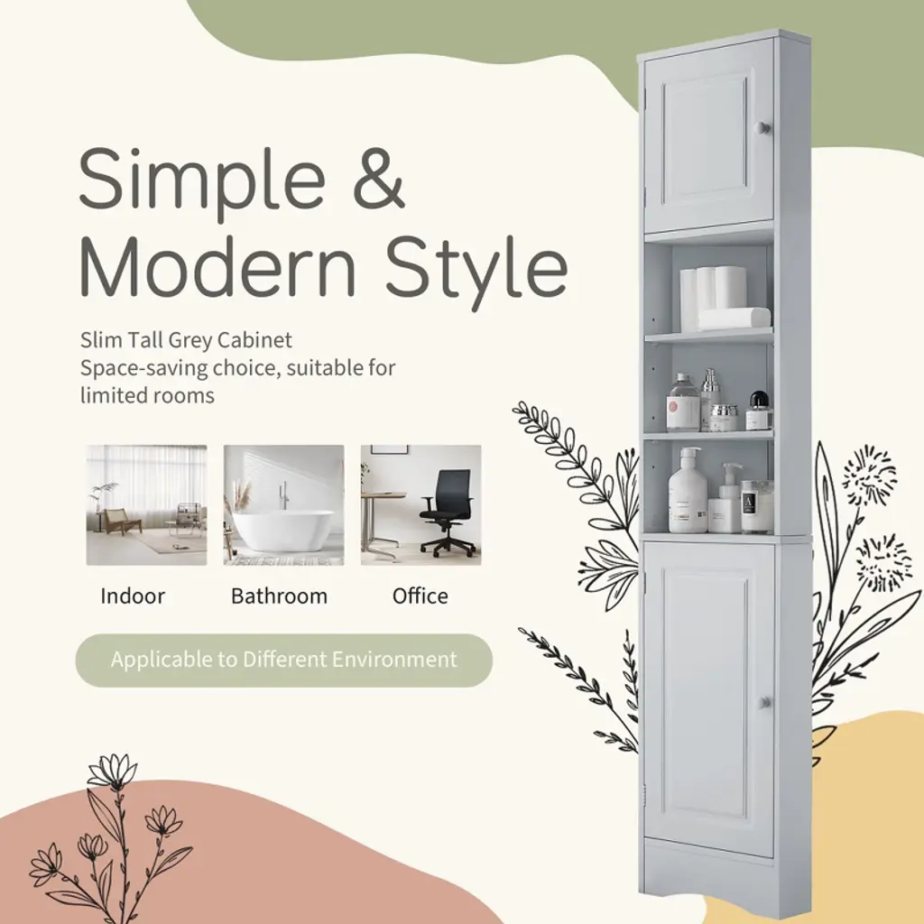 Moepisy Multi Functional Corner Cabinet Tall Bathroom Storage Cabinet, Grey
