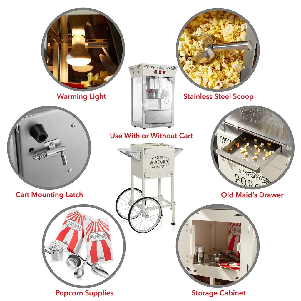 Movie Theaterstyle Popcorn Machine With Cart And 8Oz Kettle - Cream