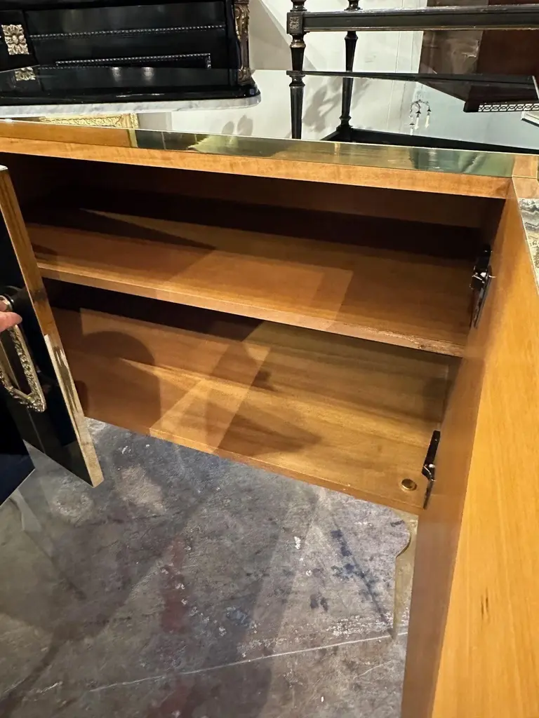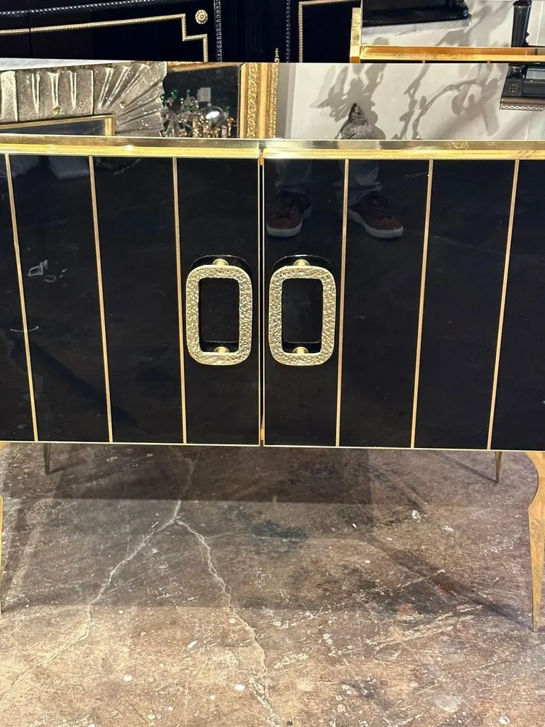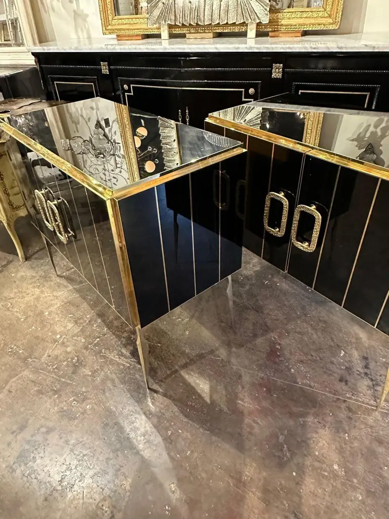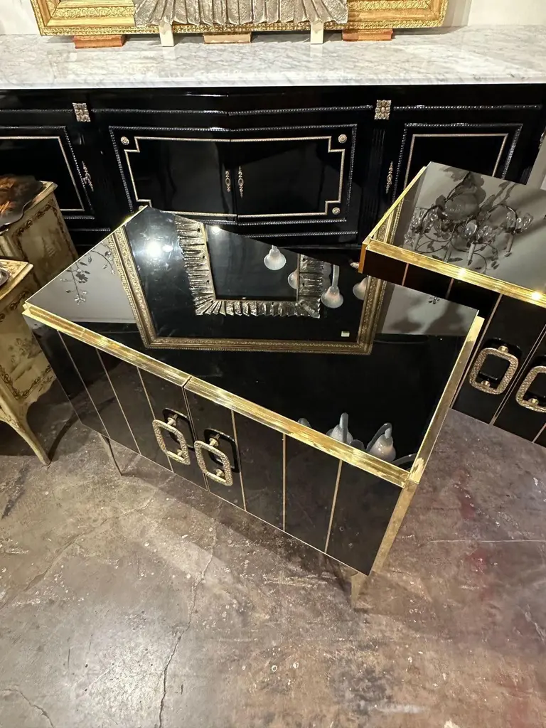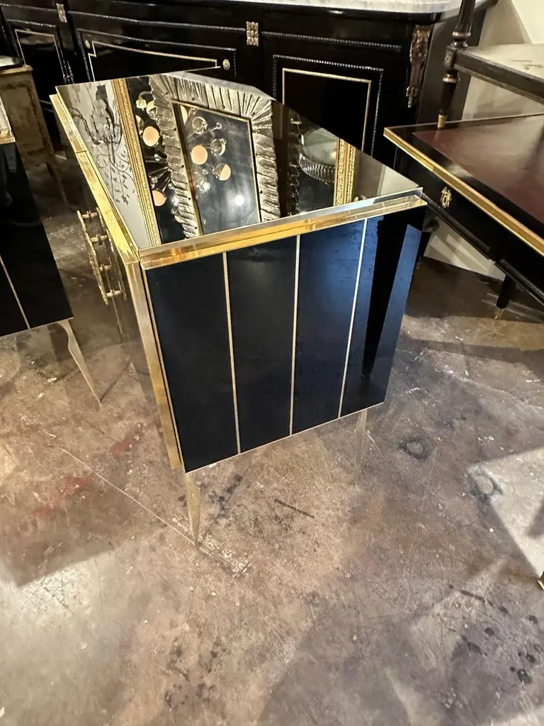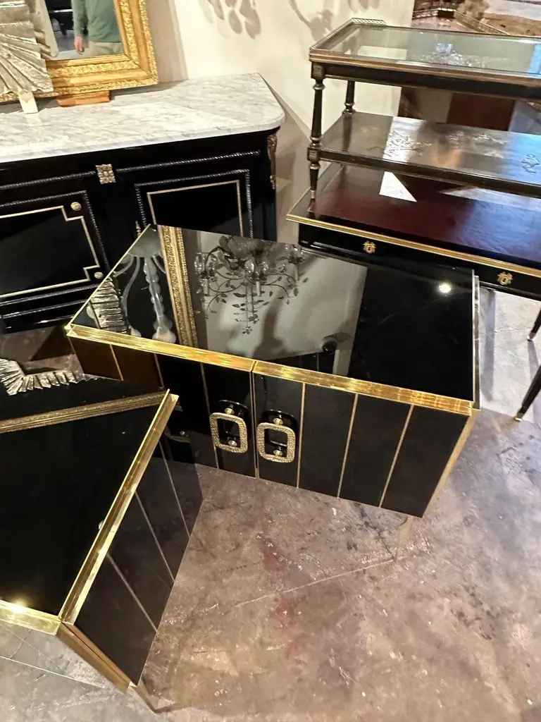 Fabulous Modern Murano black glass and brass side cabinet. Circa 2000. A favorite of top designers! Note: these are sold each.
