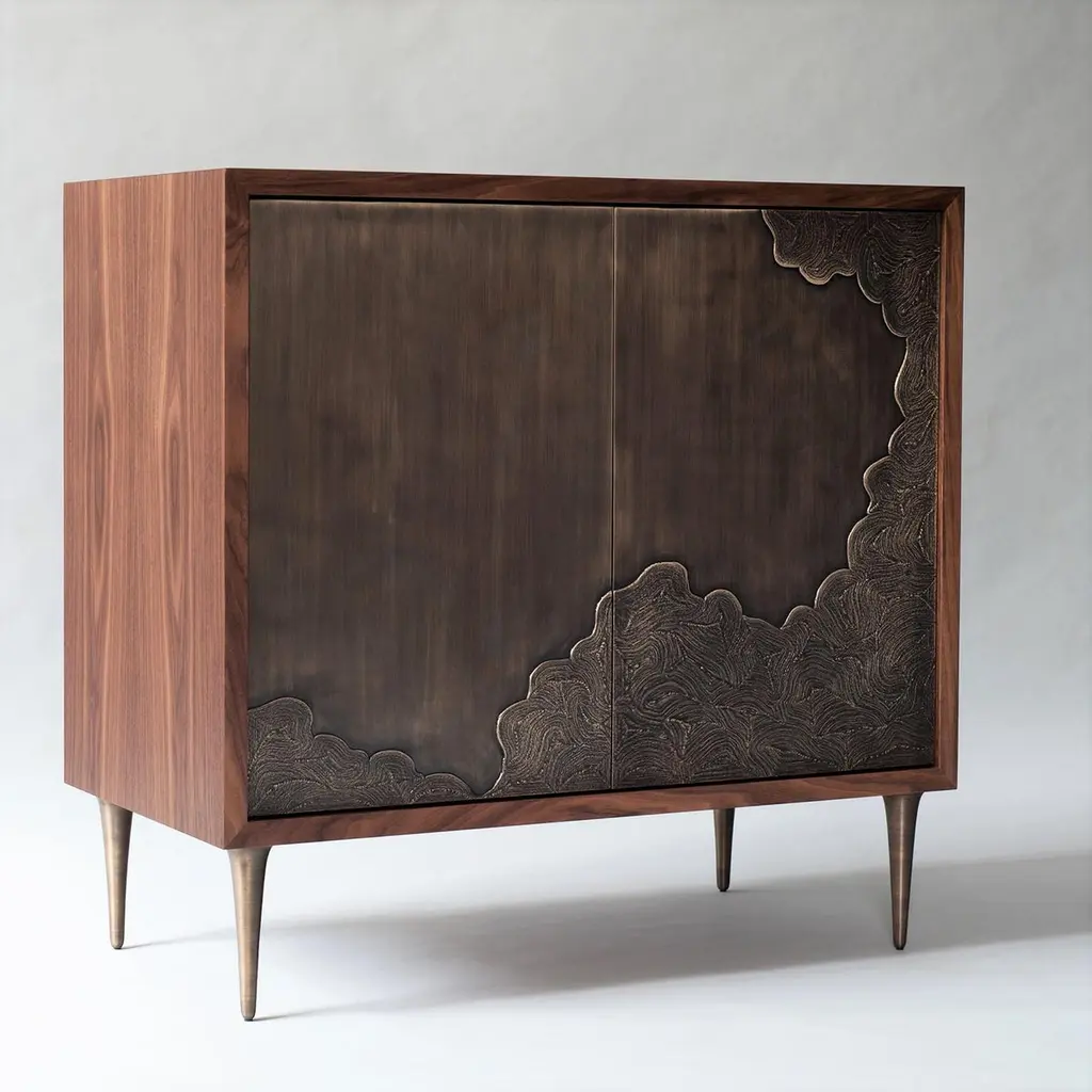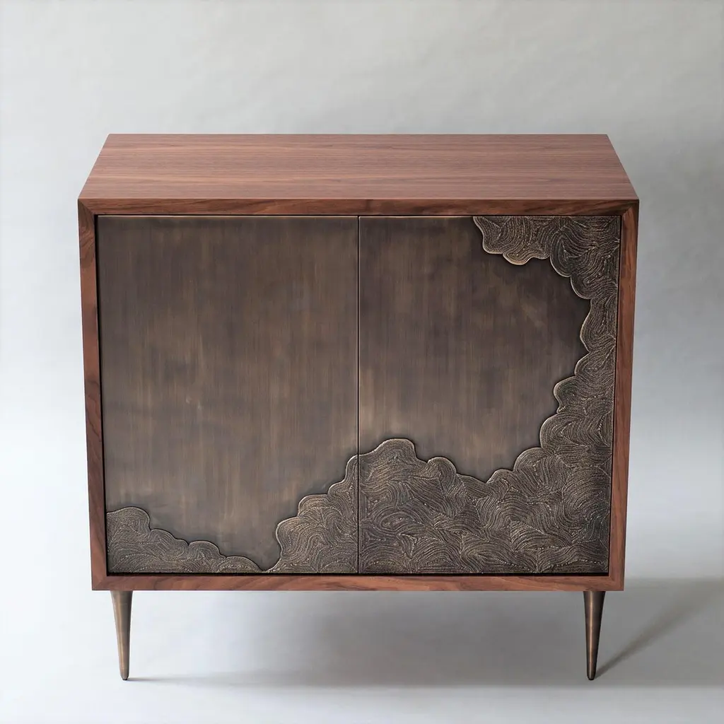 Nami Cabinet, 2 Door By Demuro Das In Walnut And Solid Antique Bronze