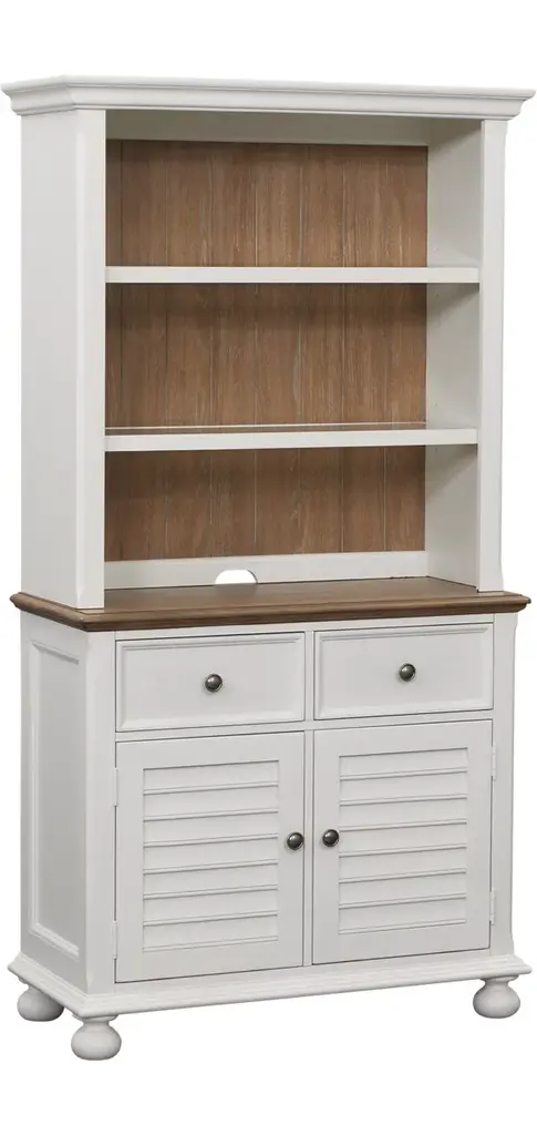 Present your treasures and decorative dining items in our Nantucket china cabinet. Crafted from hardwood solids and white oak veneers, complete with a white and driftwood two-tone finish, this piece boasts charming appeal. Its two wooden doors open to reveal adjustable wood shelves perfect for displaying your chinaware. This beautifully crafted piece is an anchor for any dining space.