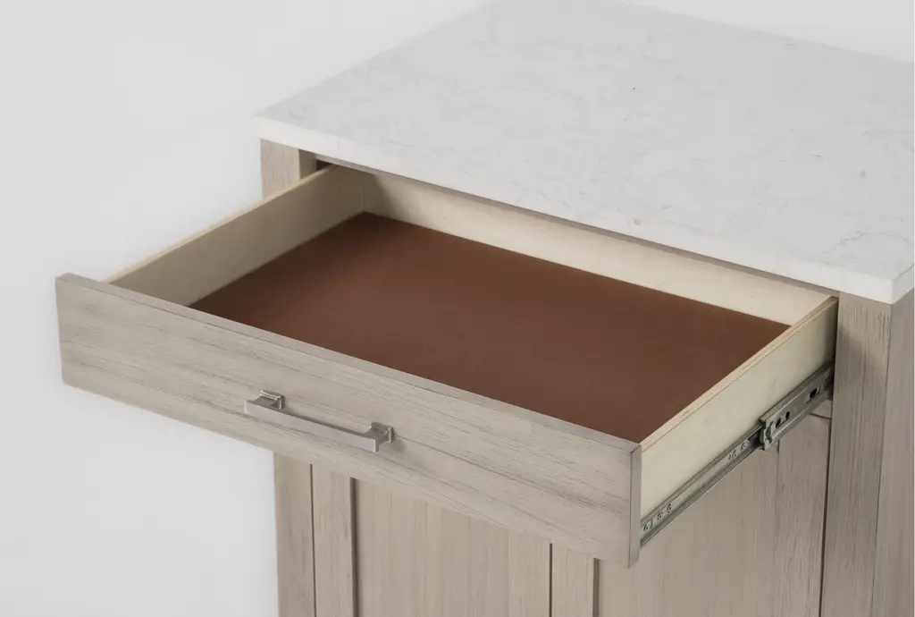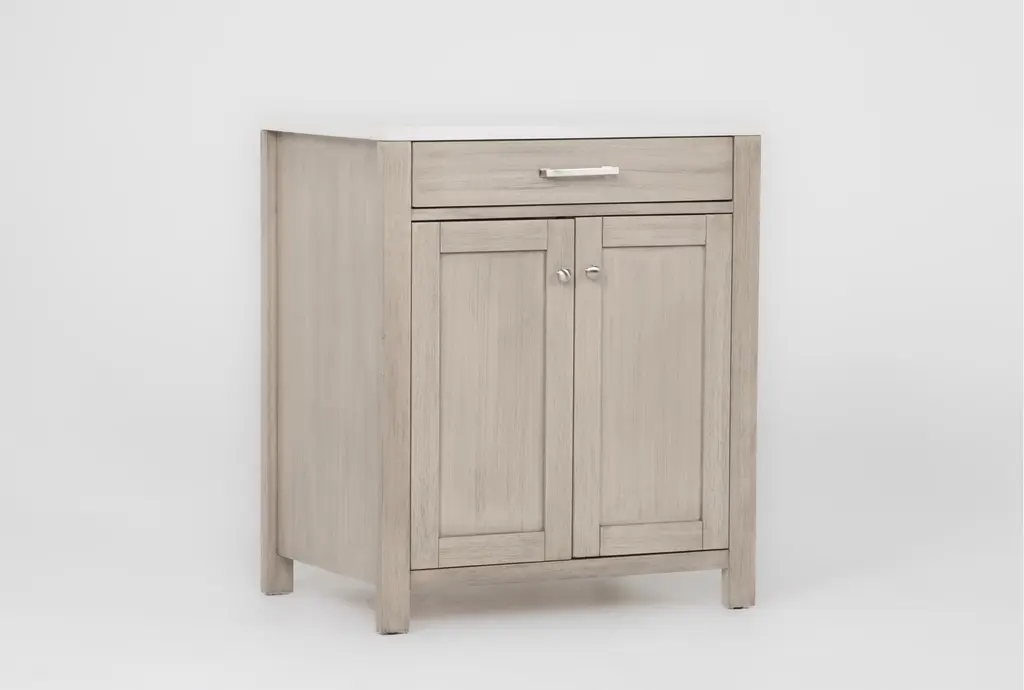 Nelina Grey Wood 2 Door 1 Drawer Cabinet With White Faux Marble