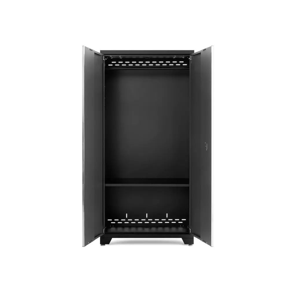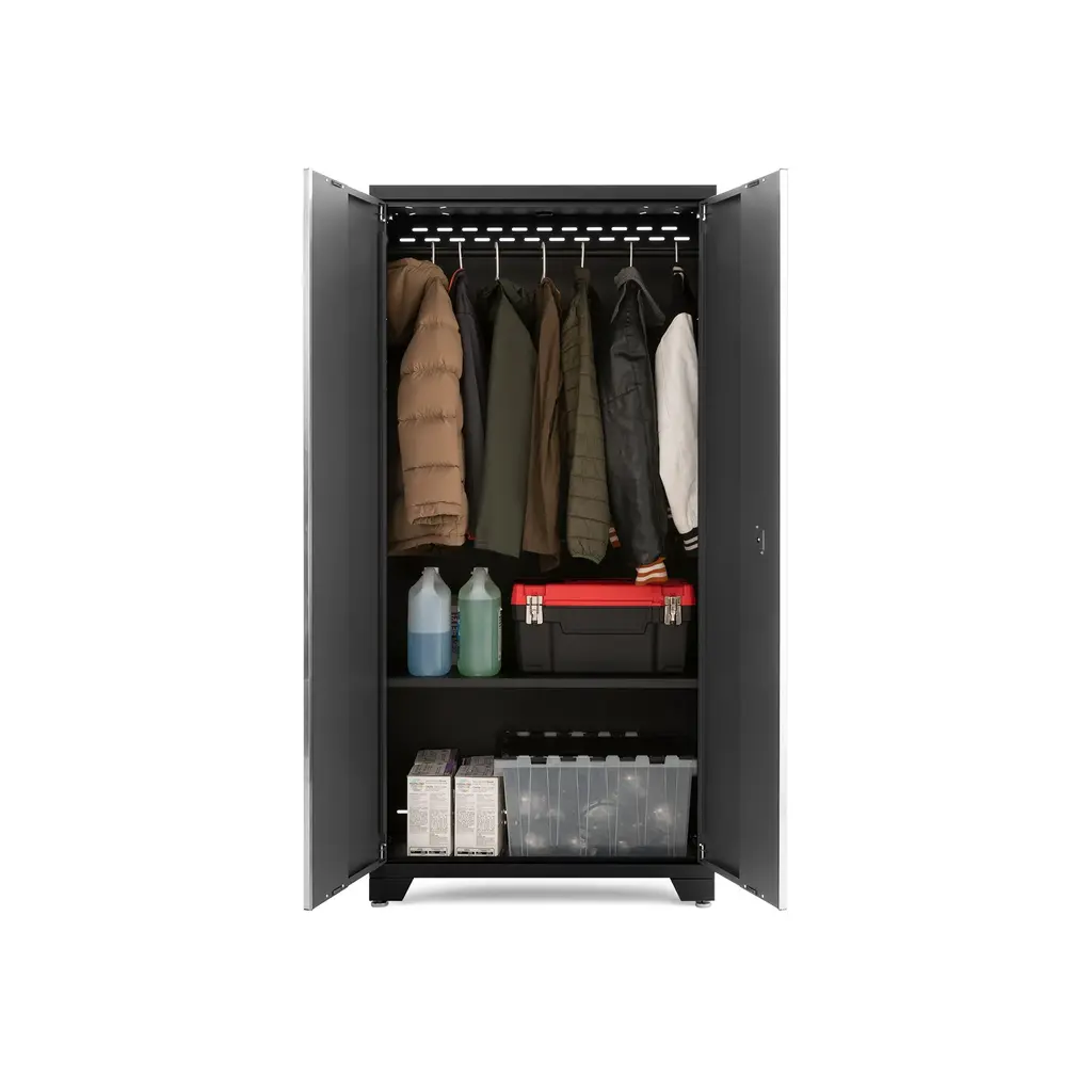 The Bold Series 36 In. Multi-Use Locker instantly upgrades the look of your garage, workshop, mudroom or other space with the versatile storage solution you need to organize just about anything. Built with welded steel frames and fully-lockable doors, these lockers provide spacious, secure storage for everything from sports equipment and power tools to gardening supplies. The durable powder-coat paint finish not only looks?great, but also?improves the corrosion resistance of the cabinet and stands up to the demands of everyday use. Integrated vents improve air flow to help to dry and air out sports equipment like football pads and hockey gear. Easily attach your own fan or filter onto the vents to further improve air circulation. Full-length integrated handles allow quick access to stored items and adjustable steel shelves give you the flexibility to organize objects in a variety of sizes. Take control and organize in style with the Bold Series 36 In. Multi-Use Locker.